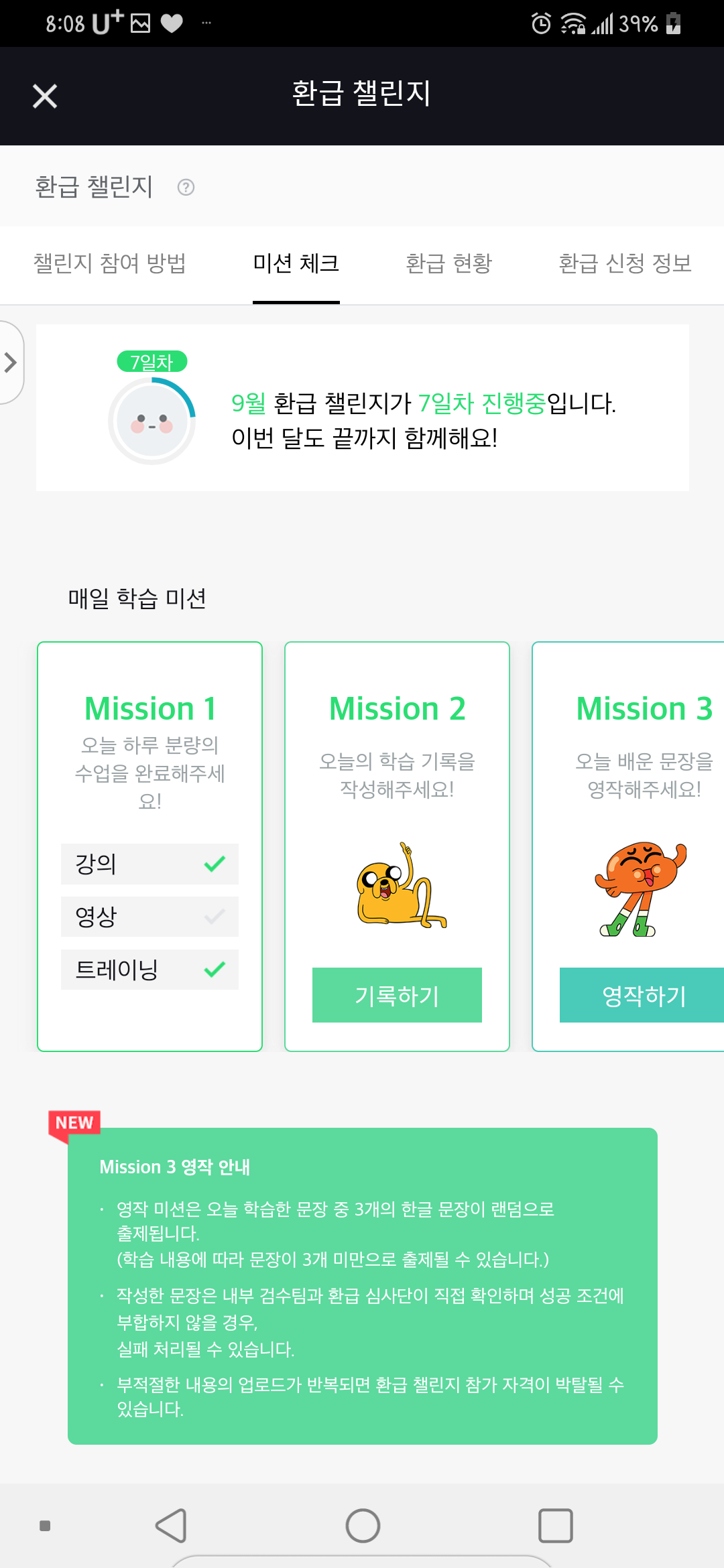첫달은 미션 완료를 잘 못 보고 끝난 것인지 모르고 첫날 실패했다.