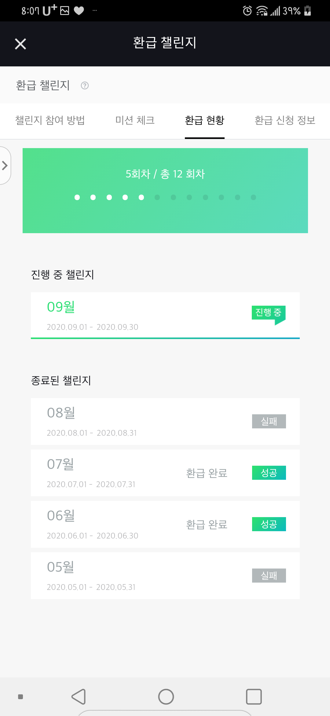 드디어 환급을 몇번 받아봐서 올려본다. 1년의 미션을 하루도 빠뜨리지 않고 하면 엄청나게 많이 받게 되지만, 솔직히 엄청 힘들다. 개인적으로 12개월 중에 노력을 엄청해서 7~8개월정도는 환급을 받을 수 있을 것으로 예상된다.