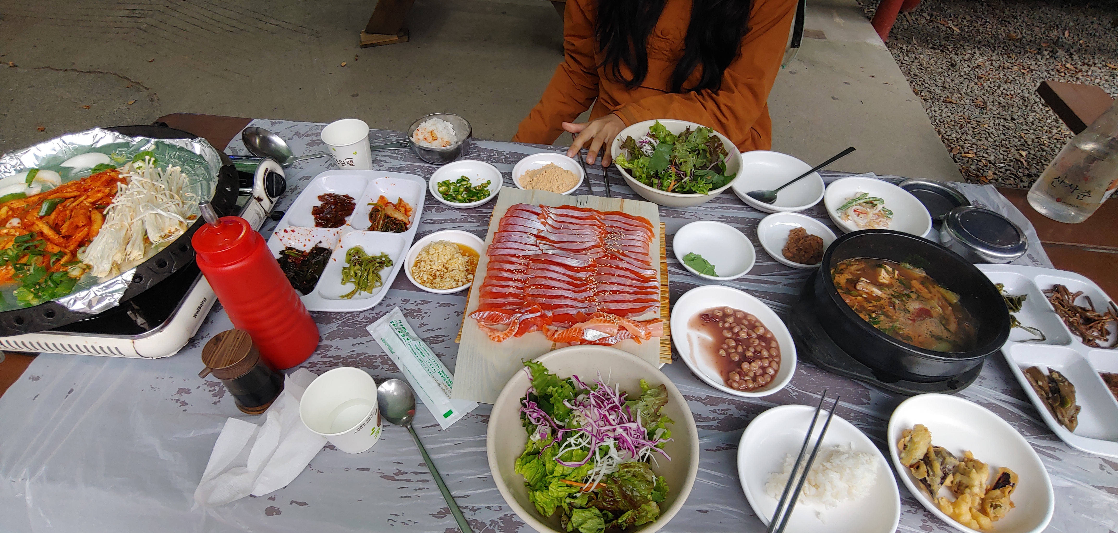 더덕정식에 나오는지 송어회 때문에 나온지는 모르겠지만 기본 반찬이 엄청나게 깔려 나왔다. 게다가 모든 반찬이 정말 맛있었다. 머랄까 등산의 어드벤티지가 있을 수 있었겠지만 사람들의 평점처럼 맛있었다. 다이어트만 아니었으면 밑반찬으로 밥 한공기를 다 먹었을 수 있었을 것 같았다.