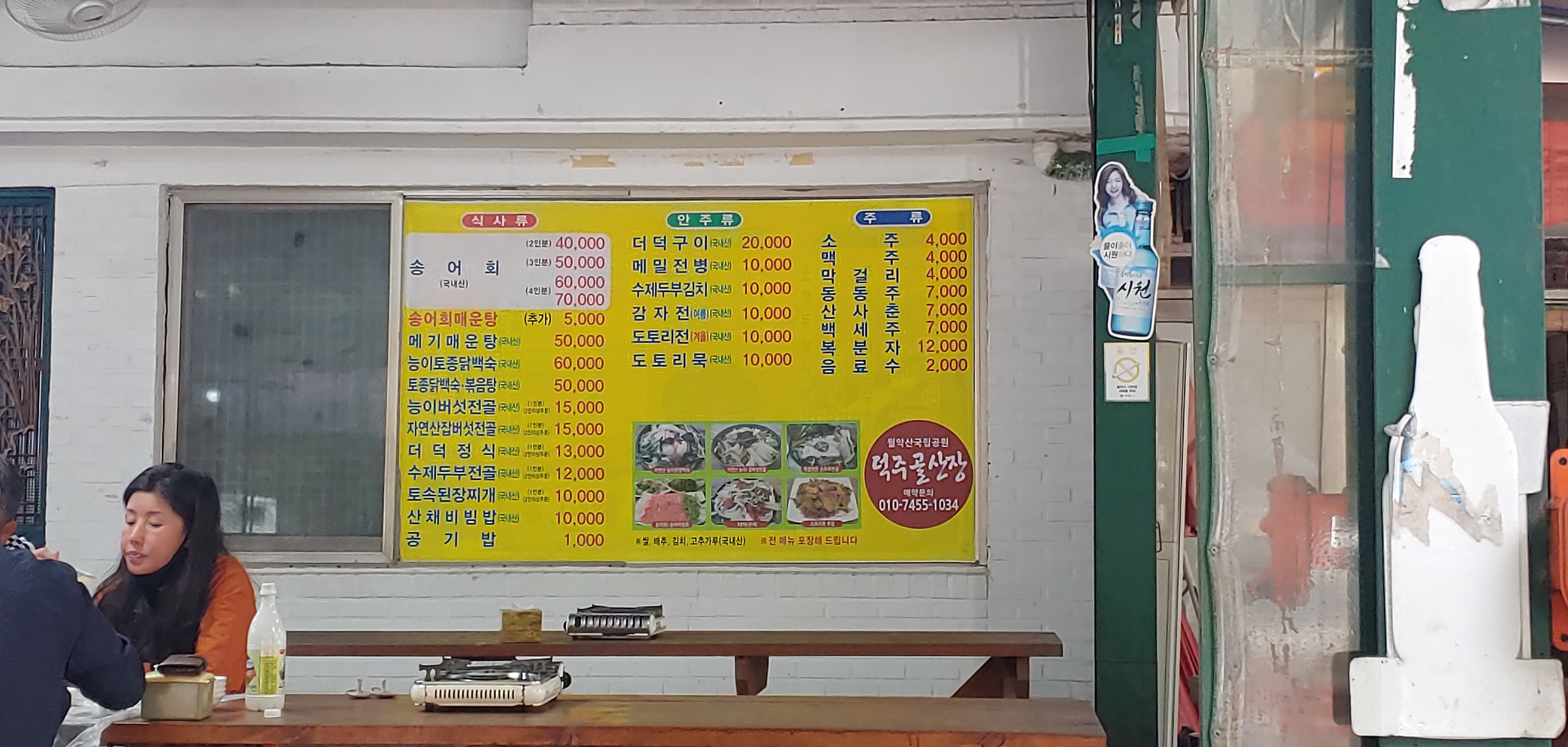 우리는 송어회 2인분과 맛만 볼 수 있다는 더덕 정식을 골랐다. 사장님이 양이 많을 것이라고 했는데 우선 맛을 보고 싶어서 무리해서 더덕 정식까지 시켰다.