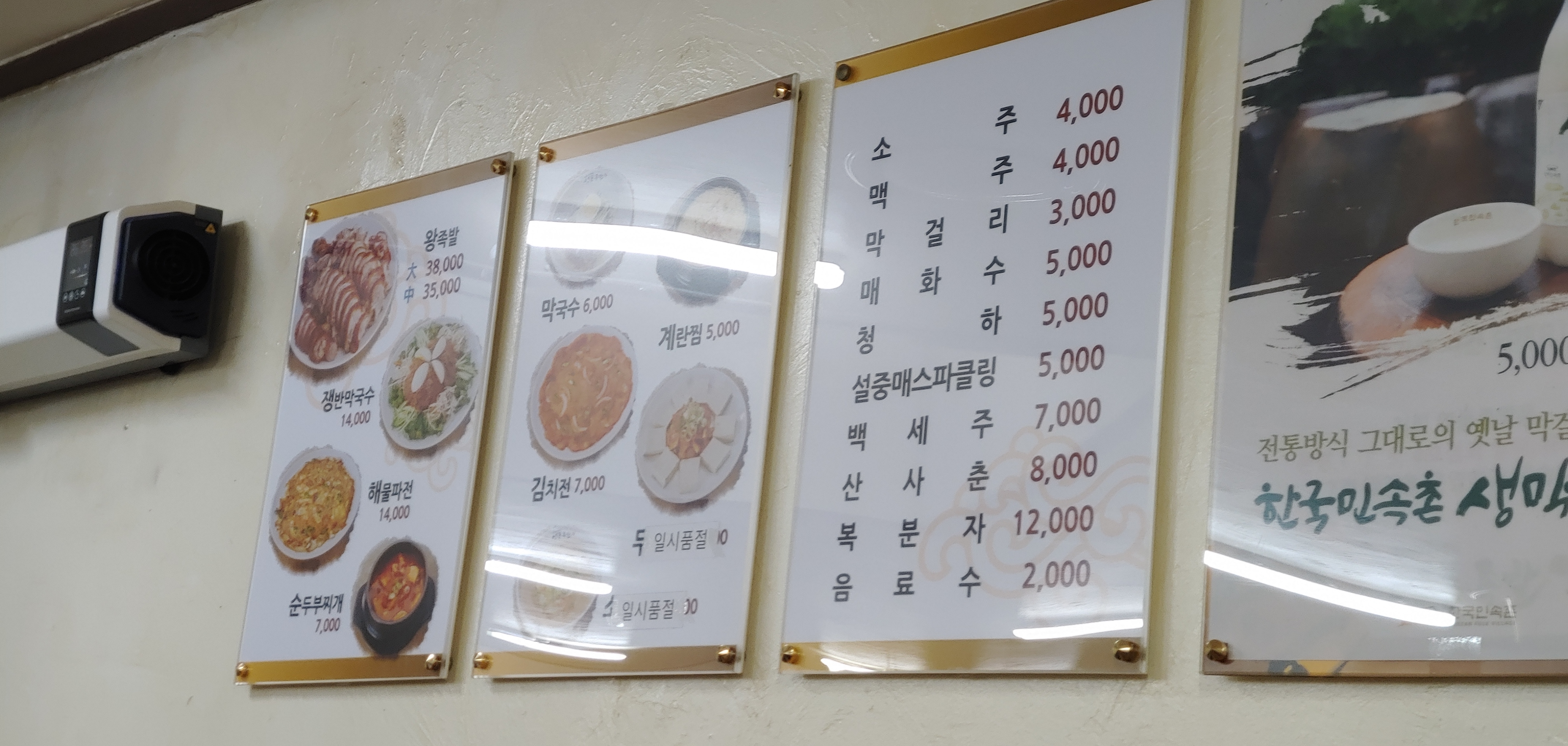 자리가 애매해서 메뉴판을 보기 어려웠지만 별거 없었다. 게다가 2명 뿐이어서 족발만 먹어도 빡셀 것 같았다. 3천원 차이라서 그냥 큰 것을 시켰다.