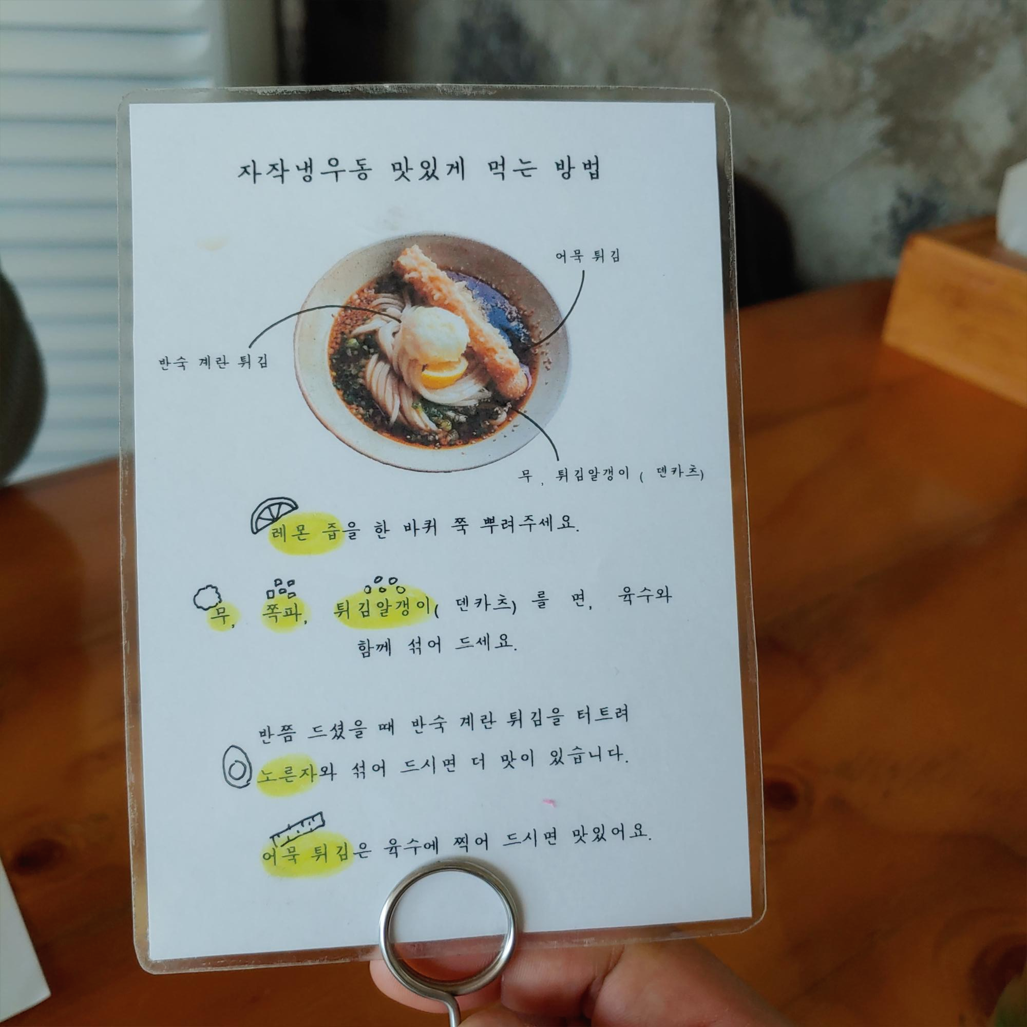오~!! 비주얼은 엄청 좋다. 인스타에 올리기 딱 좋은..... 맛도 간도 쎄고 냉우동을 많이 안 먹어봤지만 찐하고 좋았다. 게다가 시키는대로 반숙은 계란을 터지면서 국물의 간에 딱 맞아 떨어진다.