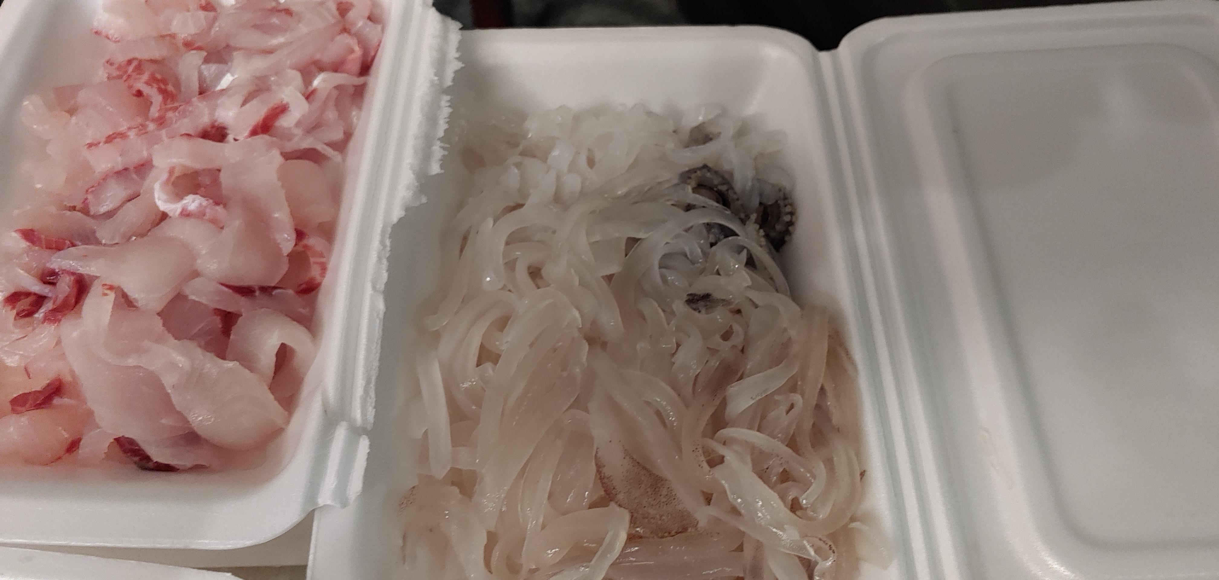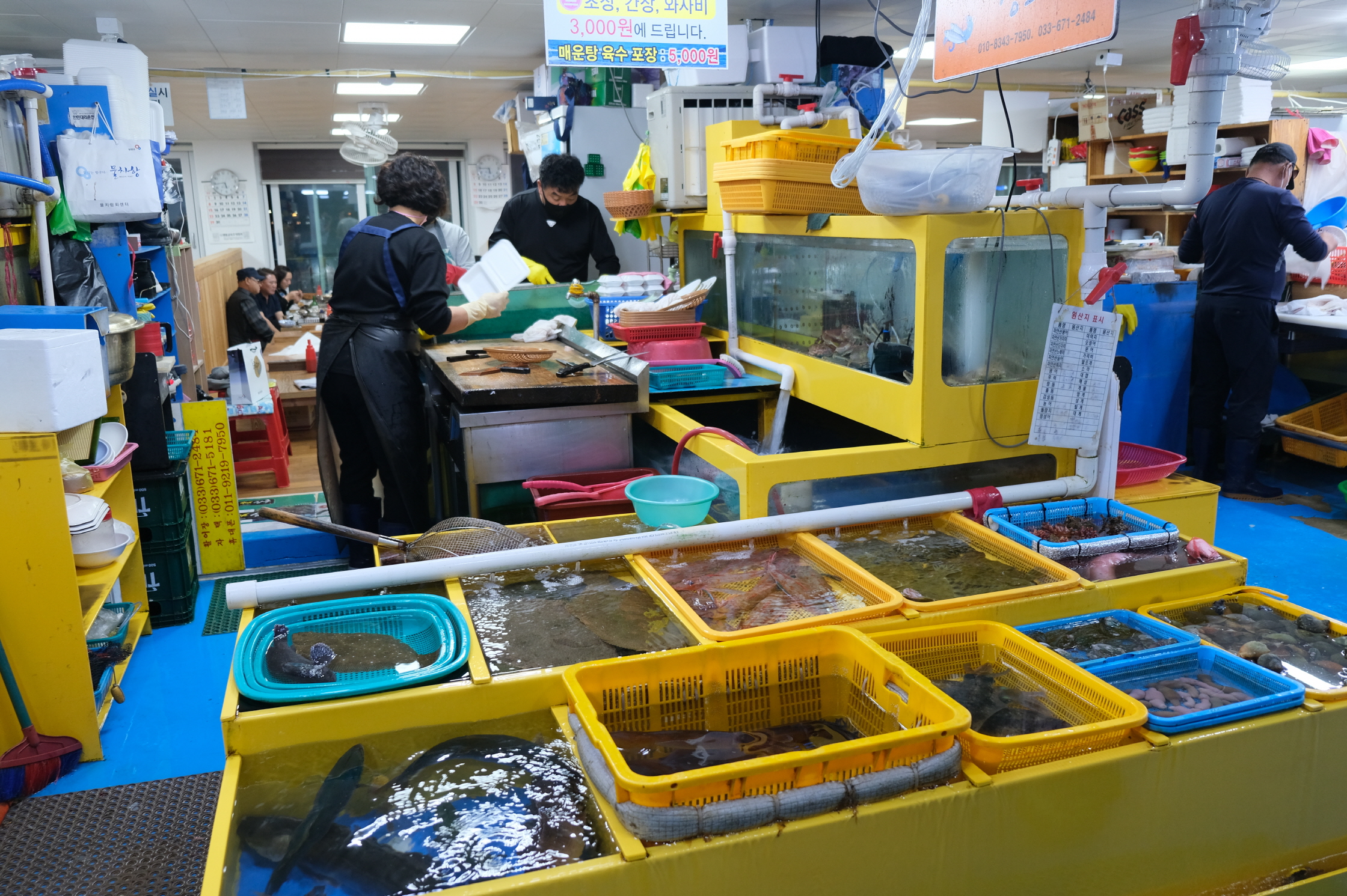 우리는 숭어 + 성대 1마리 + 오징어 이렇게 해서 5만원에 쇼부 봤다.