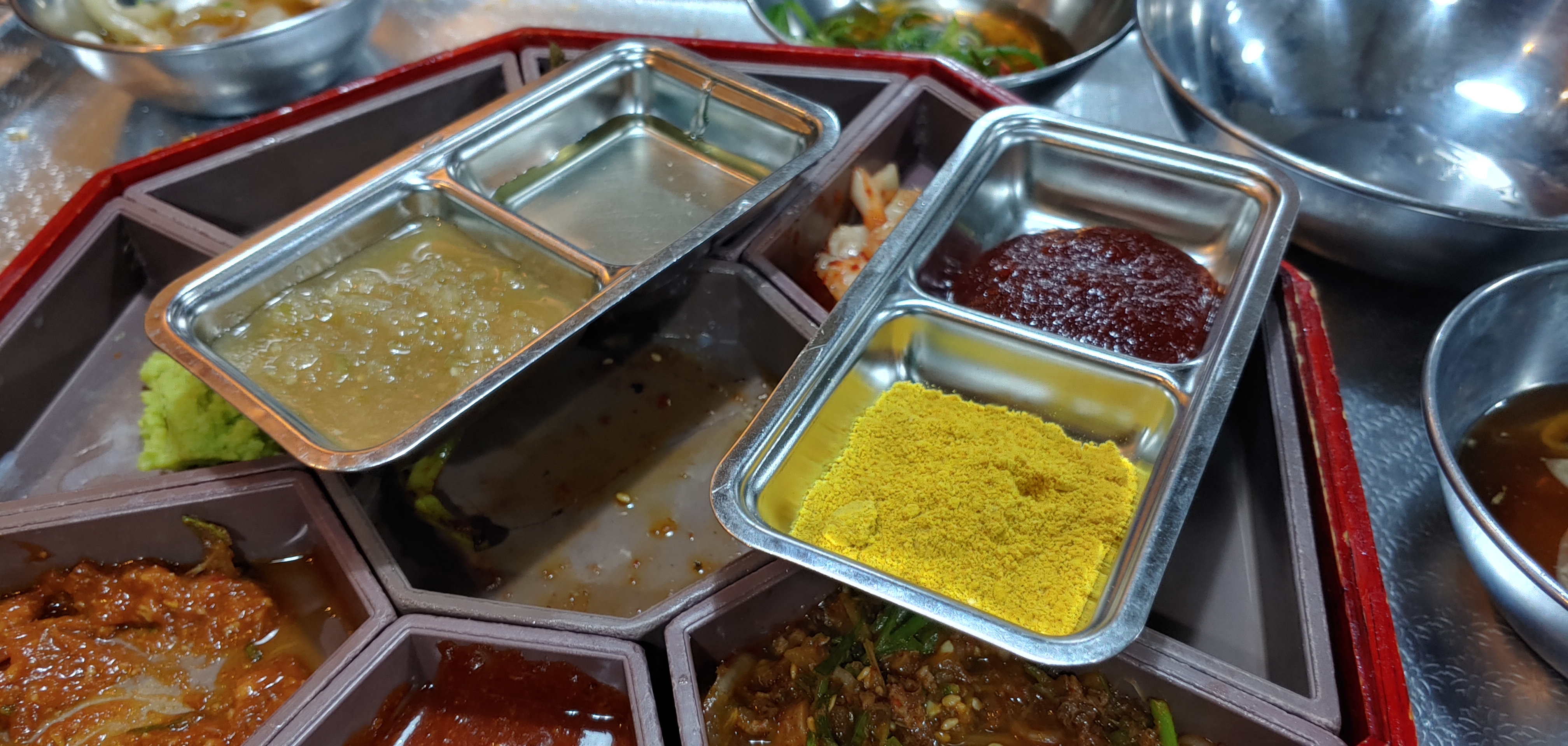 복잡한 거 싫어하는 사람에게 제일 싫은 곳이었다. 먹는 방법이 한 가지도 아니고 6가지나 된다. 개인적으로 그냥 소금 찍어 먹는 걸 좋아하니, 그다지 땡기지 않았다. 그래도 여기까지 왔으니 종류별로 하나씩은 다해보았다. 다 거기서 거기다.