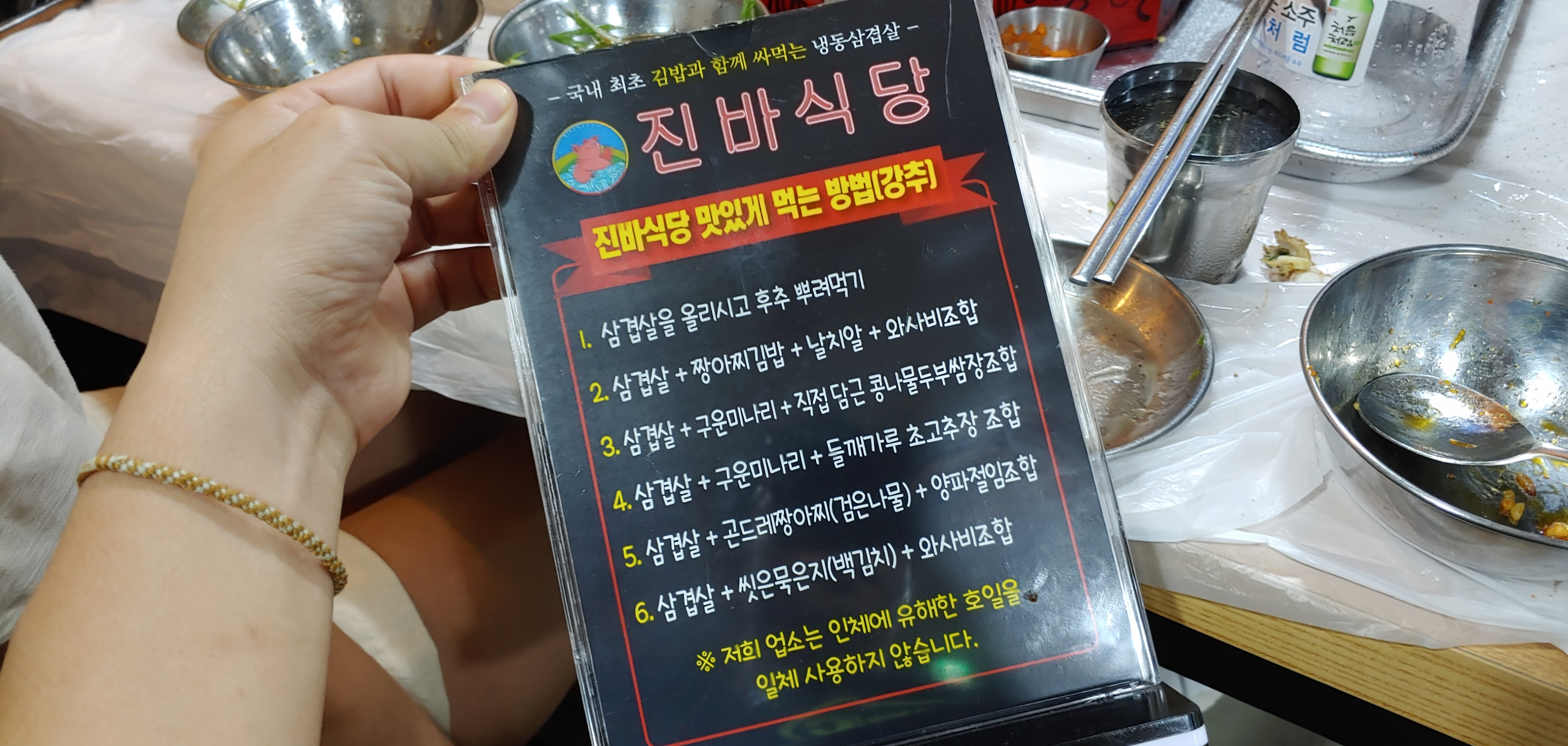 2019년 7월 어느 더운 여름날. 우리는 19금 Talk를 위해 7월 19일 금요일 19시에 만나기로 했다. 과연 우리가 19금 이야기를 할지는 모르겠지만, 우선 만나기로 했다. 사전 투표를 해서 결정한 곳은 "진바 식당" 마지막으로 언제 냉동 삼겹살은 먹은 지 기억도 나지 않았다.