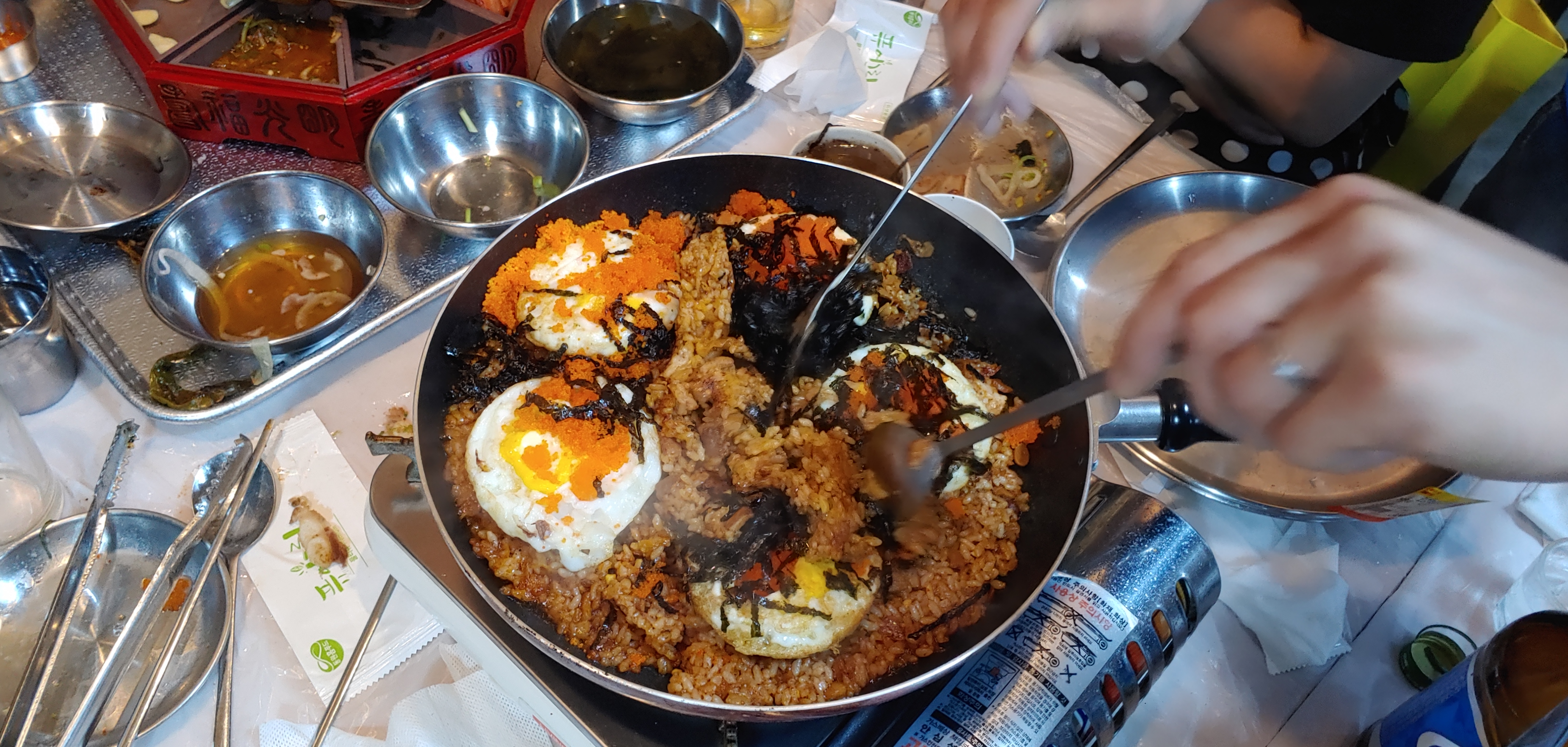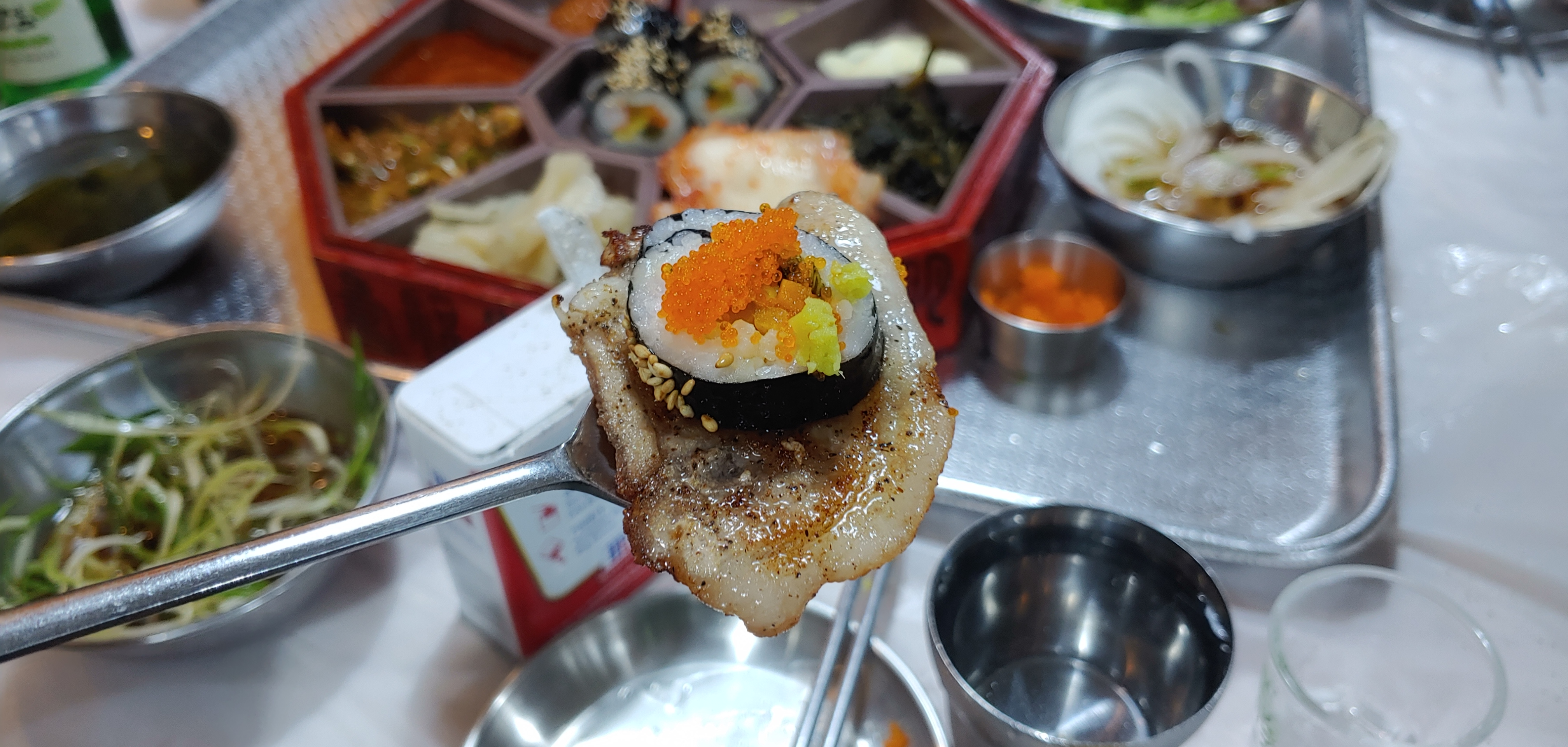 기본 세팅으로 온 것들이 상당히 많다. 김밥은 왜 있지라는 생각이 드는데, 이따가 싸 먹는 데 사용이 된다. 저기서 김밥과 꼬막을 제외하고는 다 리필이 되었던 것 같다.