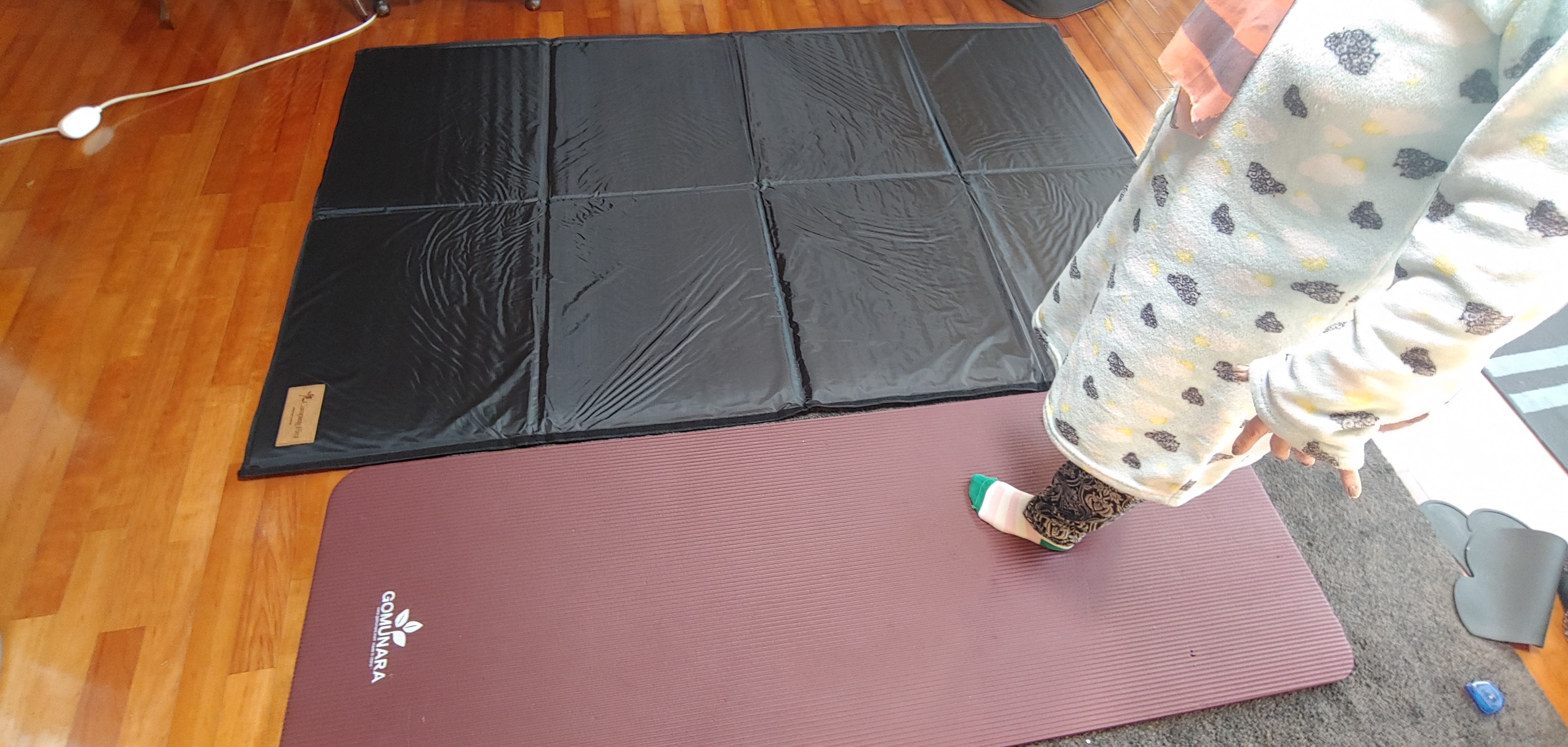 사이즈를 느낄 수 있게 요가 매트와 사람이 누워보았다. 크다 커....