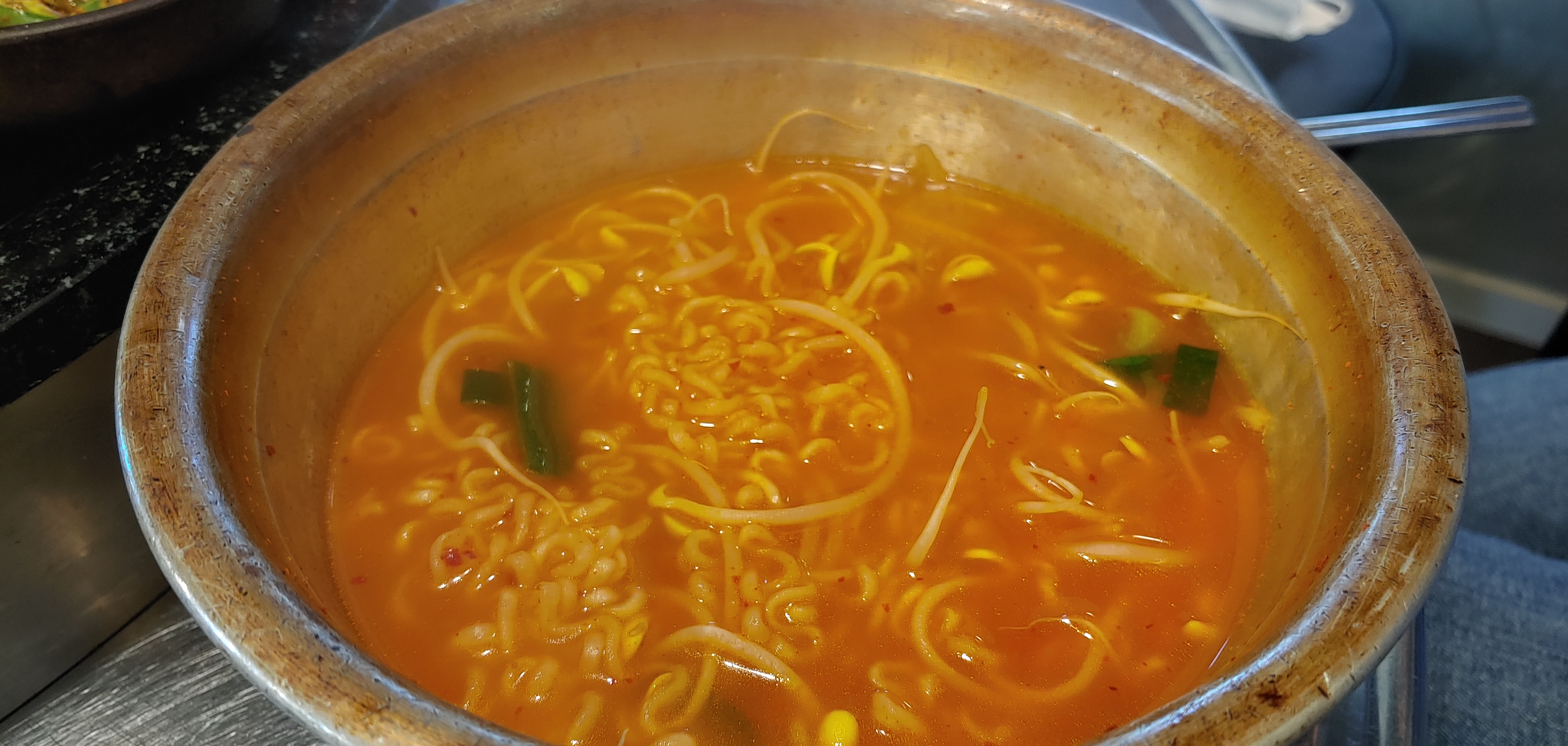 여기가 또 좋은 것이 서비스로 김치? 라면을 제공해 준다. 다만 한개가 아니라 반개라 약간 아쉽다.~!