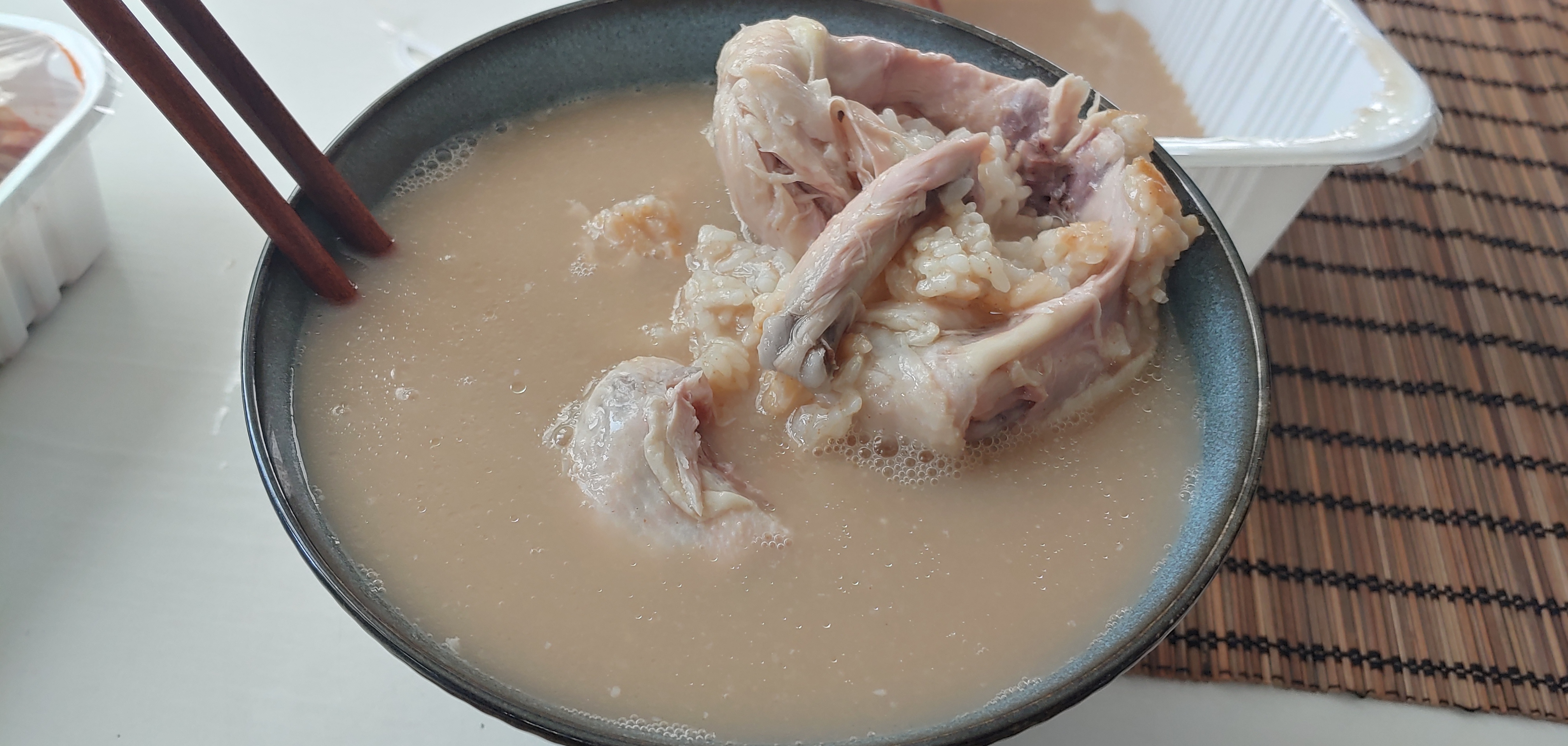 한방 삼계탕에 당해서 국물을 좀 남겼다. 그릇에 넣는데 고소한 냄새가 확 올라온다. 그리고 찐득한 느낌이 있어서 걸쭉한 느낌을 좋아하시는 분들에게 딱 맞을 것 같습니다.