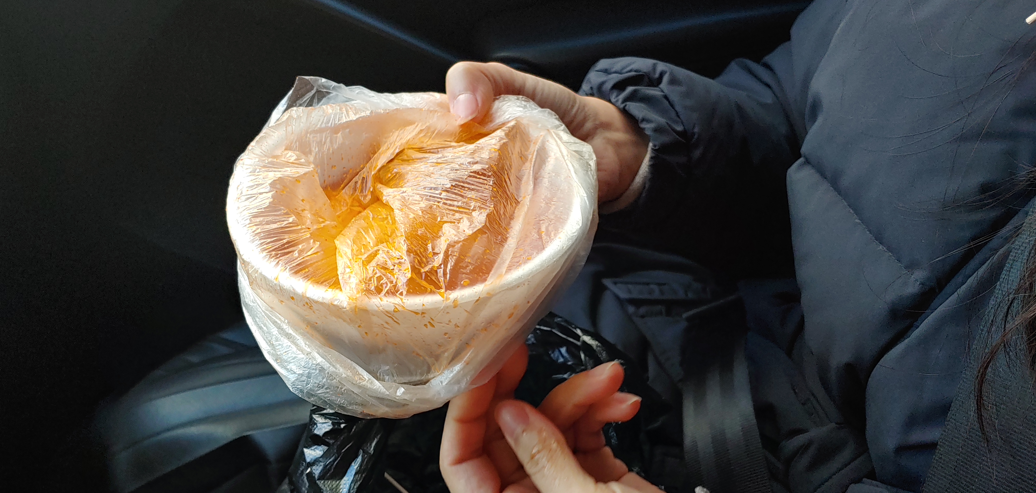 차를 가져와서 안에서 먹고 싶었는데, 그냥 포장했다. 참을 수 있을까?