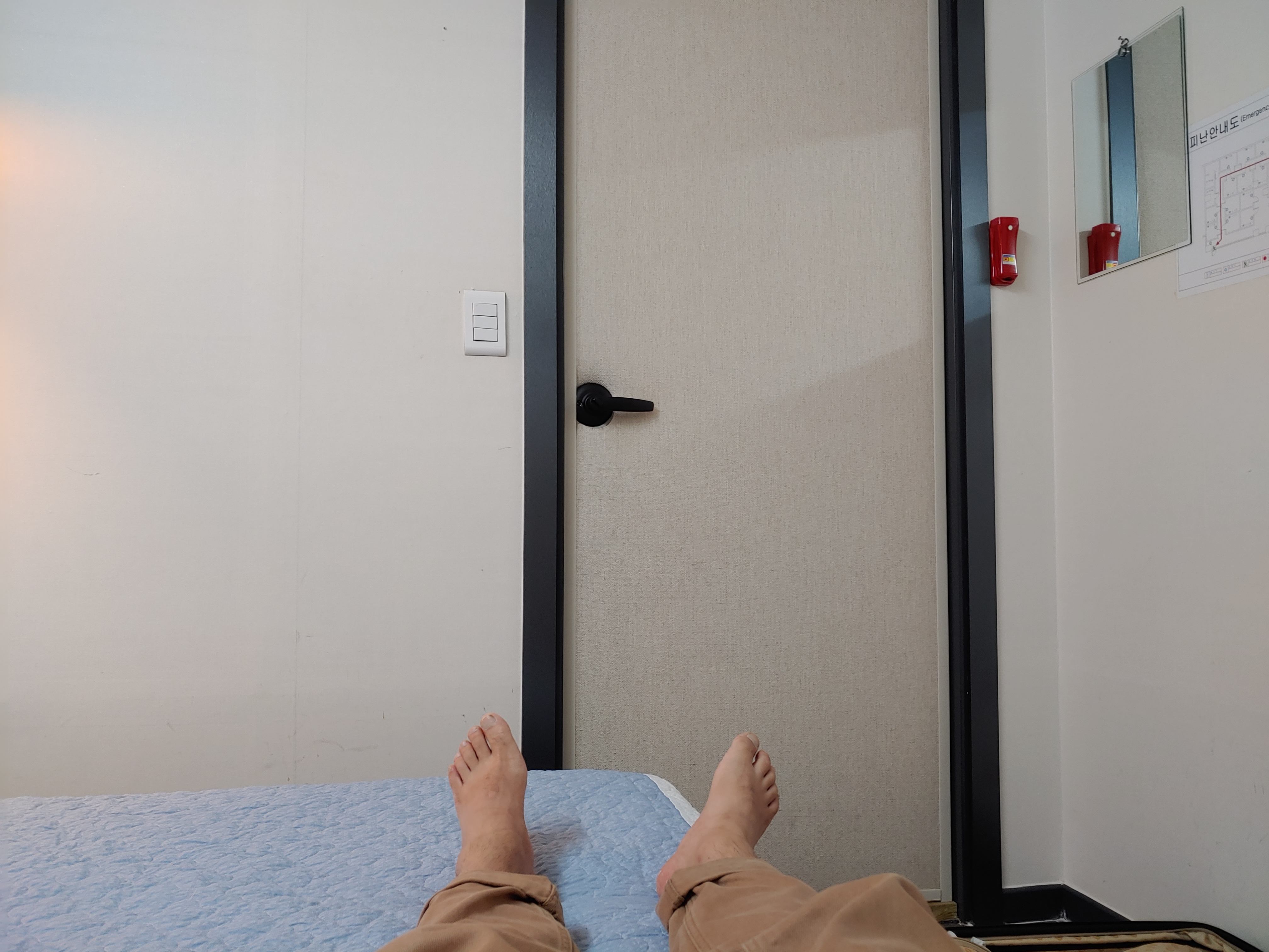 개쫍다. 고시원 수준? 의 따닥따닥 붙은 방에 쫍고 편한 느낌은 아니지만, 그래 39,000원이다를 외쳤다. 너가 돈이 많았으면 또 부지런했으면 그냥 아침에 콜택시 타고 왔으면 되자나~!