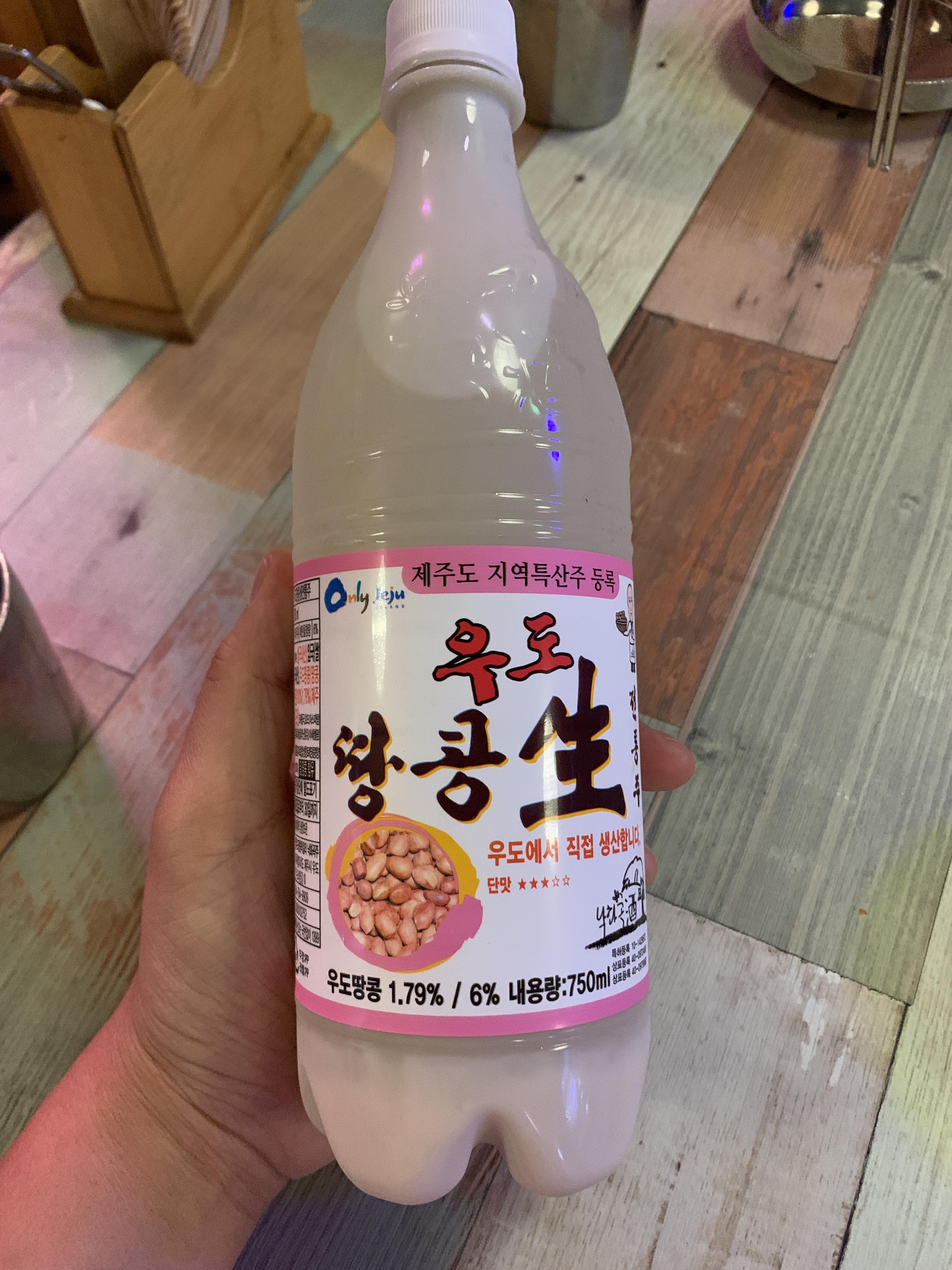 우선 첫 번째 막걸리는 제주도에서 온 땅콩 막걸리를 마시기로 했다. 가격이 무려 6천원이다. 비행기?를 타고 왔는지 엄청 비싸다. 아마도 배로 왔겠지?
