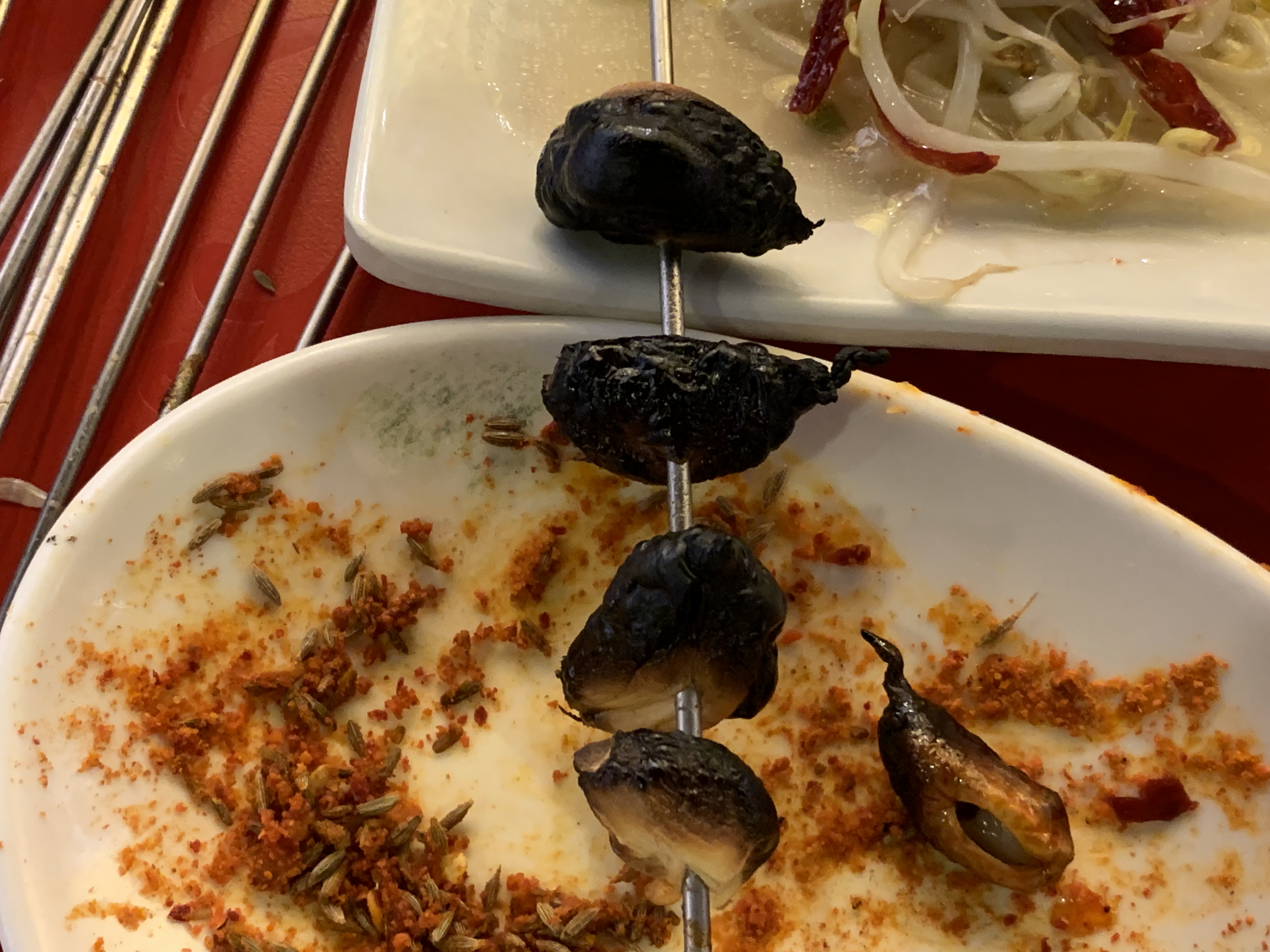 우리는 강추세트를 먹으면서 요리 하나를 고르기로 했는데, 양꼬치 하나 뜯자마자 시켰따. 마라향궈를~!