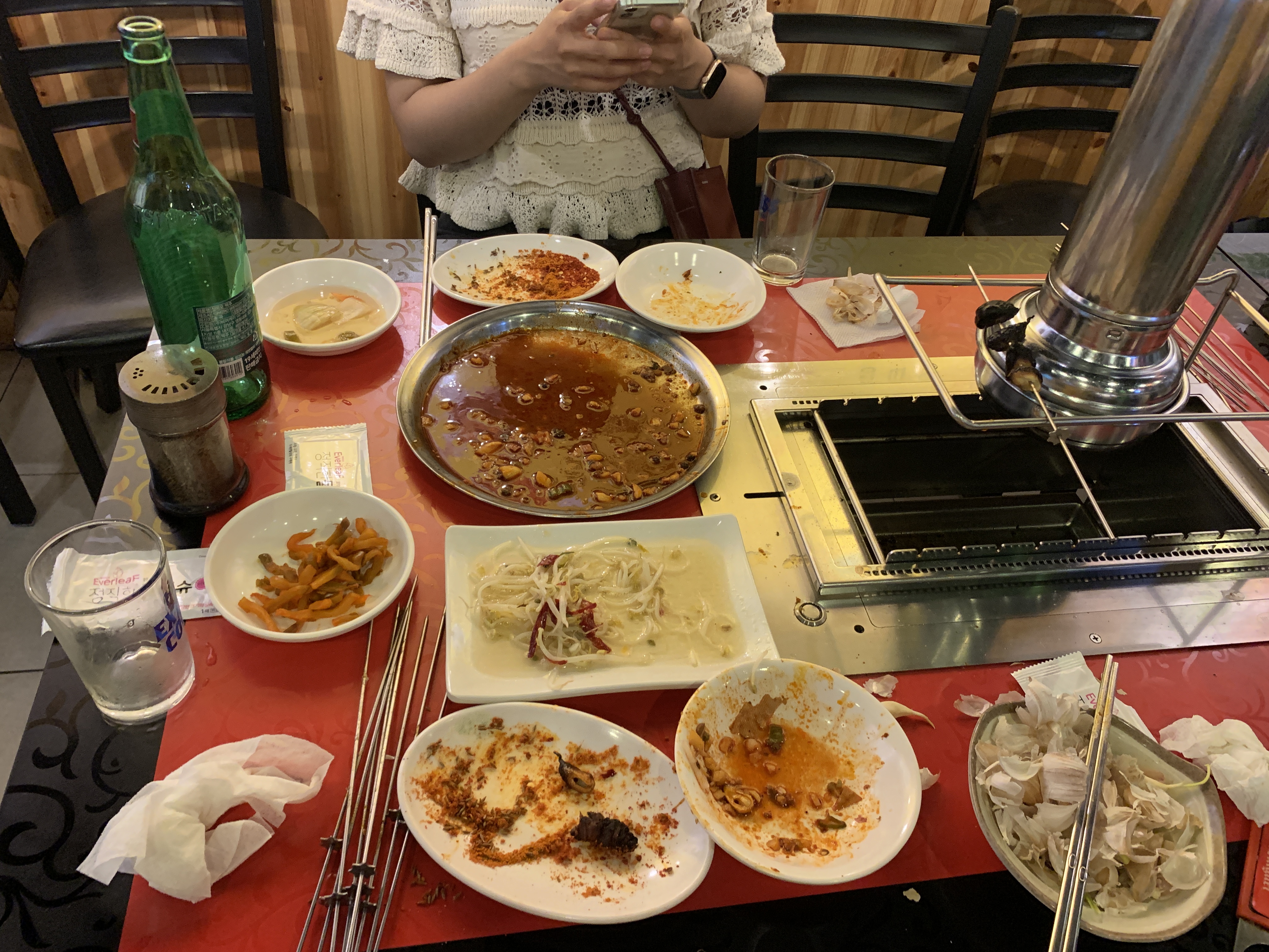 이 곳의 장점은 마늘을 줘서 그냥 우리가 구워서 먹을 수 있는데? 아무도 신경을 안쓰면 다 탄다 ㅋㅋㅋ