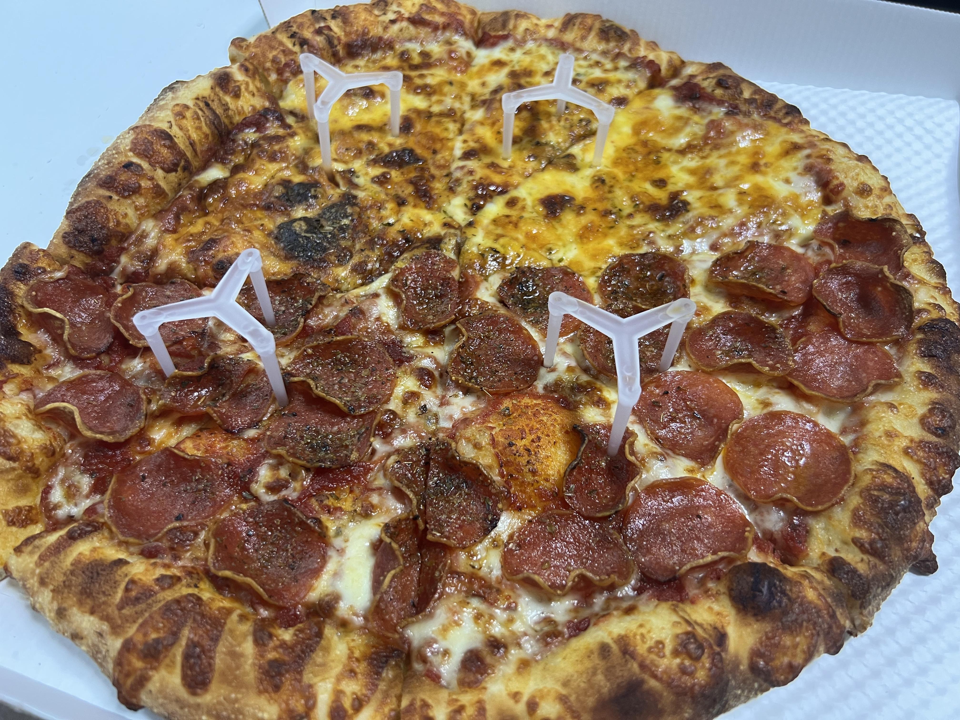 페페로니와 치즈 하프 앤 하프로 시켰다.