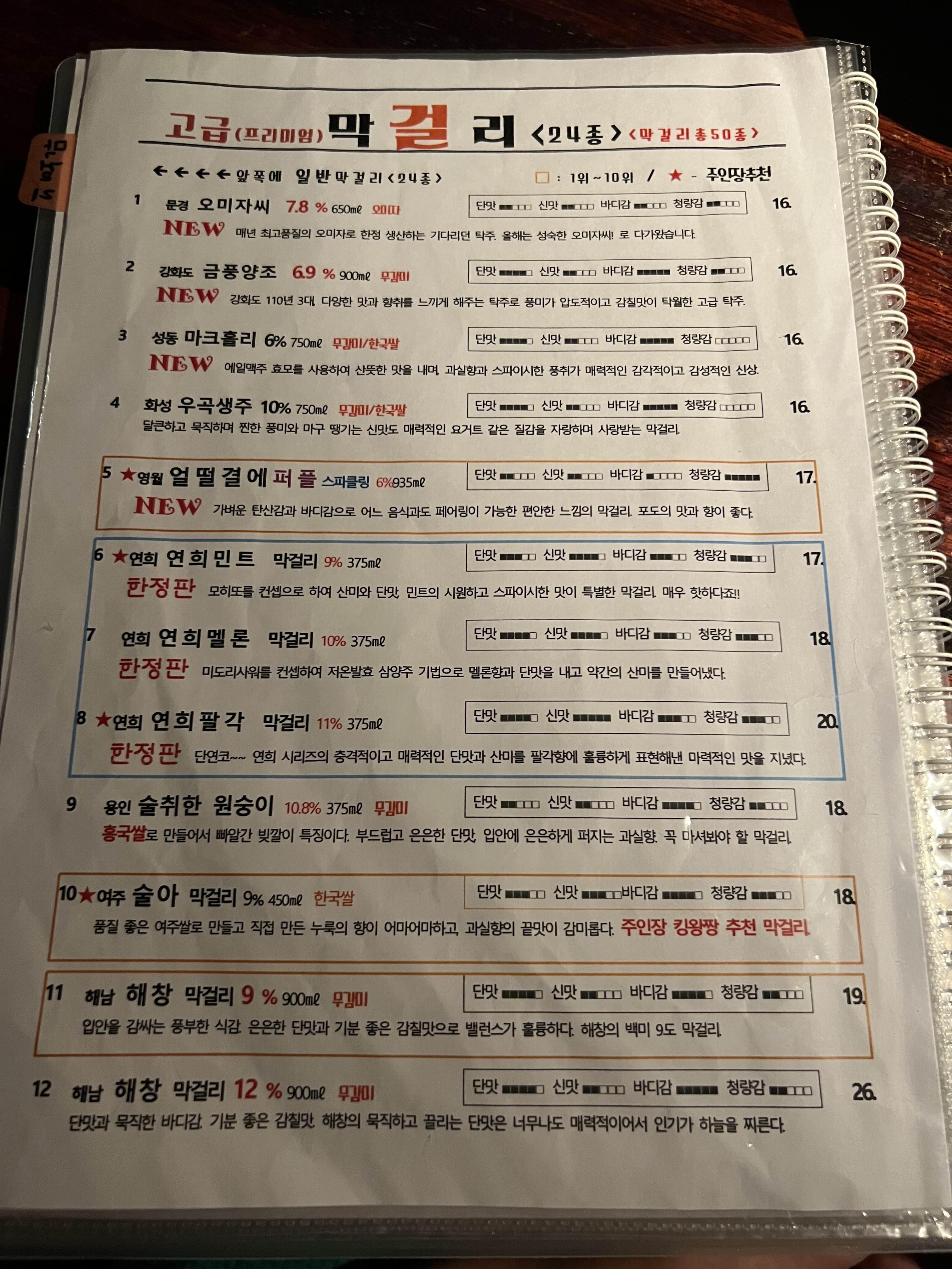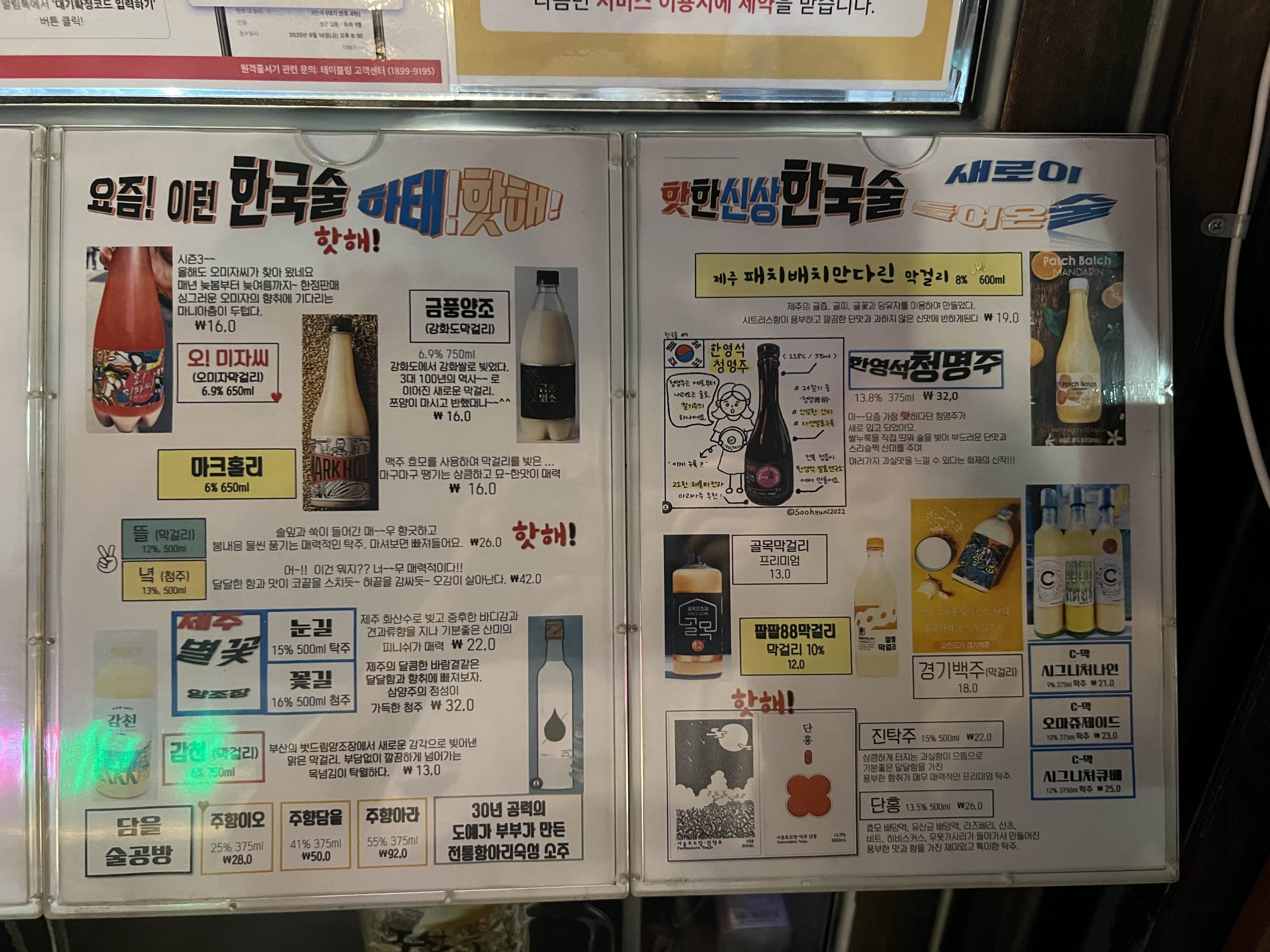 솔직히 술이 다소 비싸다. 엄청 비싼 것은 아닌데, 먹고 싶은 것이 많아 더 시키고 싶은데 약간씩 고민하게 만든다. 그런데 생각해보면 여기도 상할 수 있는? 술을 팔아야 하고 그래야 해서 좀 비쌀 수도 있을 것 같다. 남 걱정할 때는 아닌데, 여튼 맛있는 음식과 함께 다양한 막걸리 등의 술을 즐길 수 있어서 좋은 곳임에는 틀림없다.