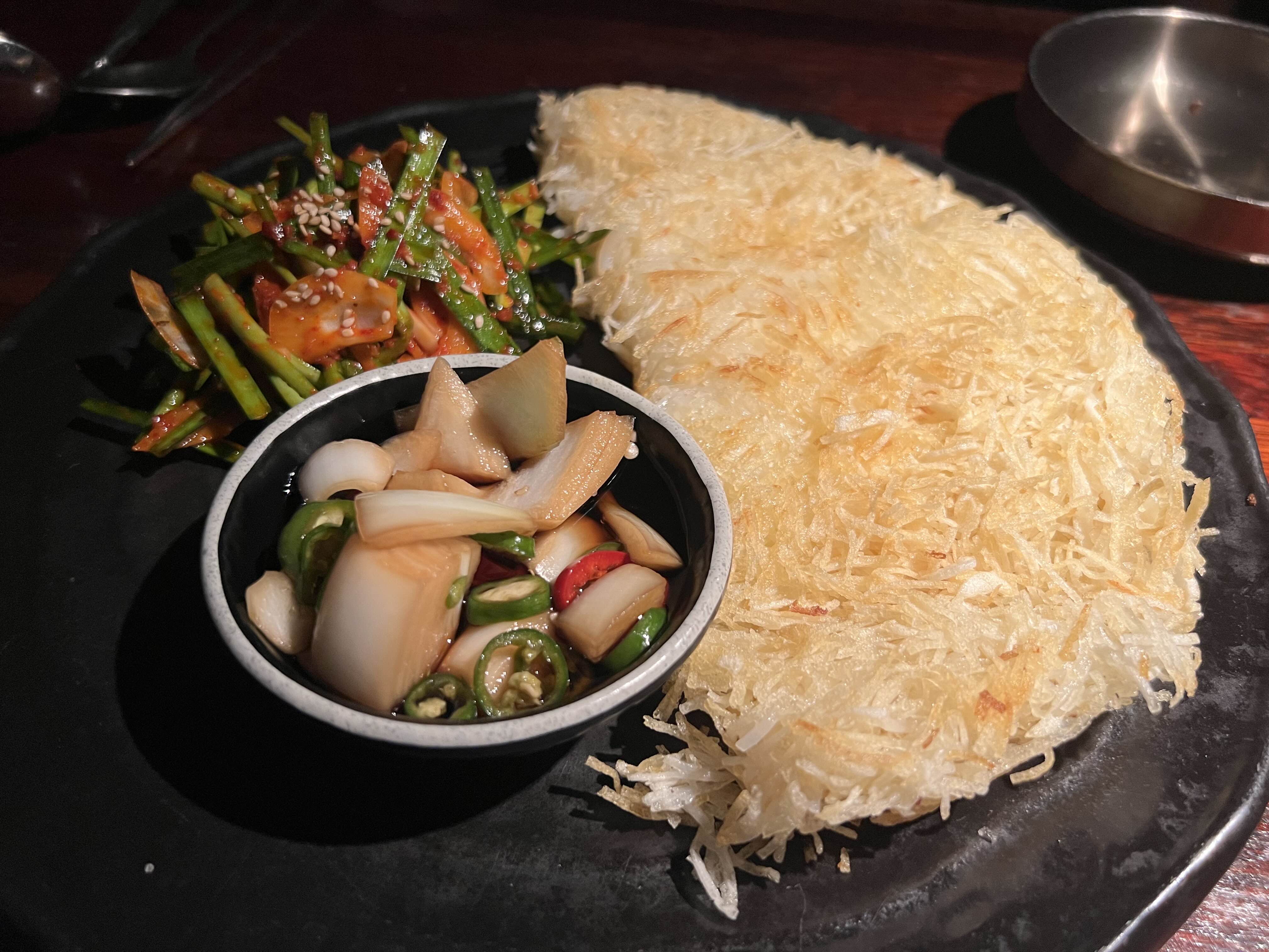 어렵게 온 곳이라 그냥 가기 아쉬웠다. 하나 더 시켰다. 지르는 김에 지르는 거다. 먹는 김에 더 먹는거다. 감자채를 썰고 치즈를 넣어서 부쳤다. 튀김같기도 하고 그래서 맛이 없을 수 없는 맛을 낸다. 시키기를 잘했다고 반복했다.