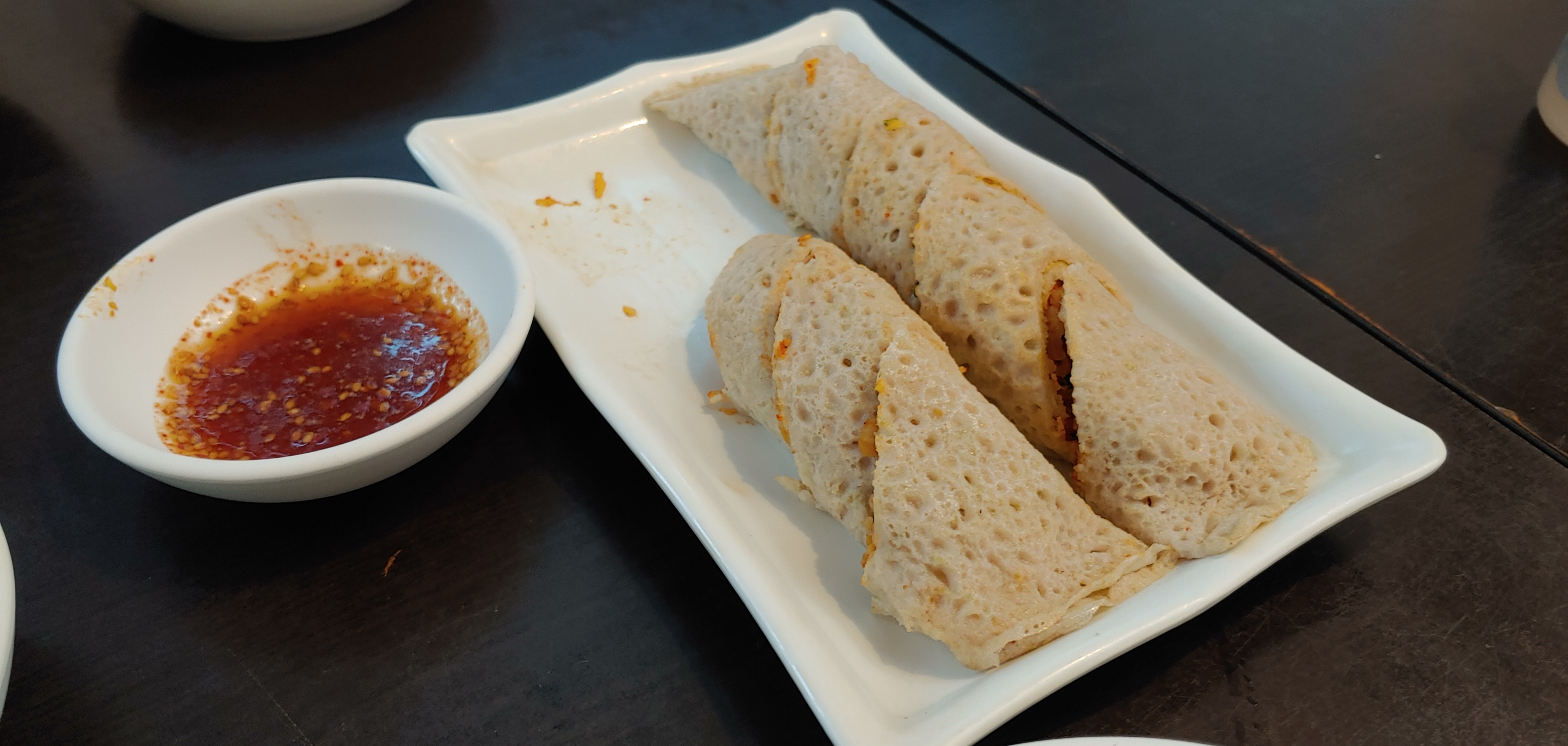 게다가 메밀전병의 김치는 엄청나게 강하게 느껴지고 전병?은 뽀송뽀송한게 식감은 특이하지만 먼가 맞지 않는 느낌이 든다.