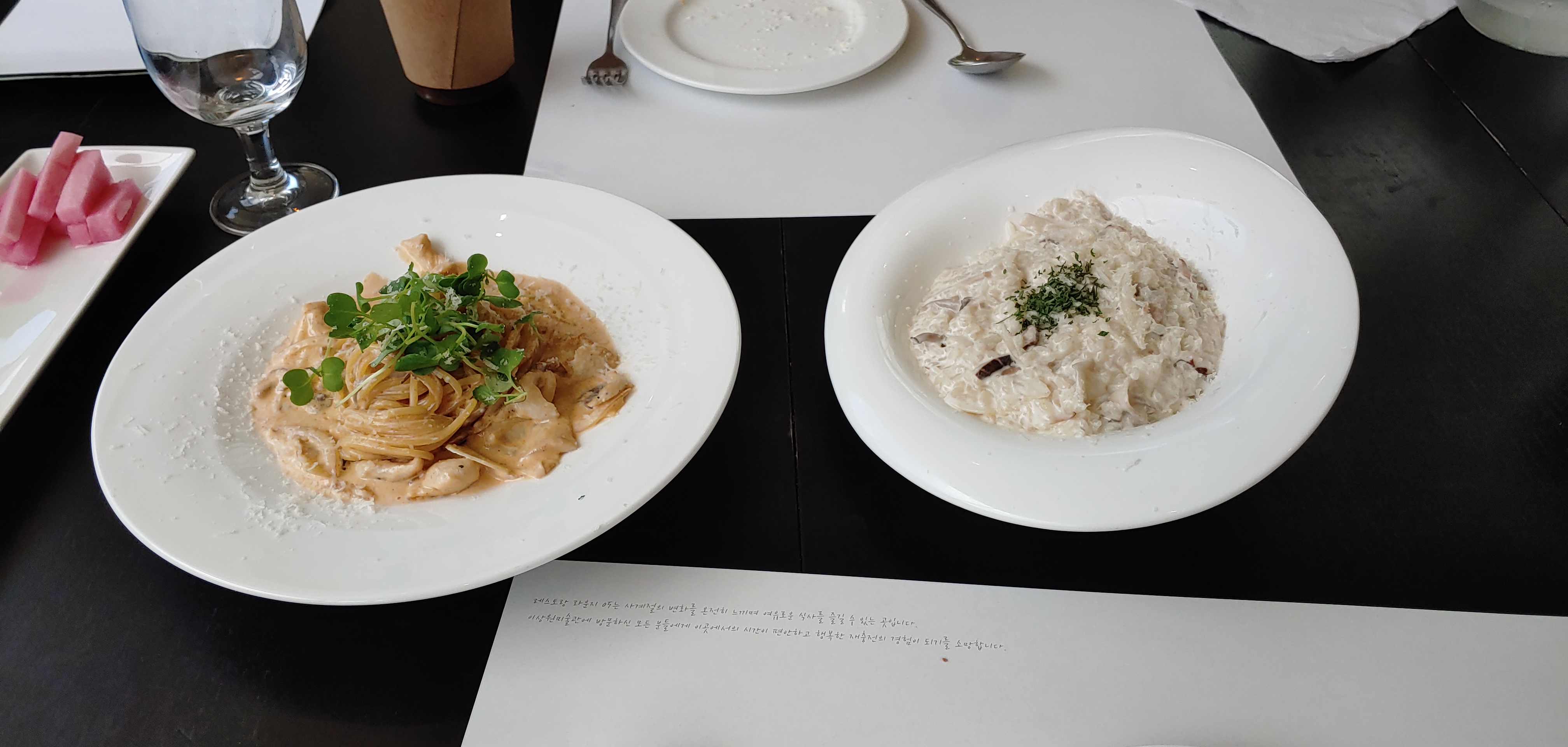 역시 플레이팅은 하얗고 큰 그릇에 나와야 조금 있어 보이는 것 같다.