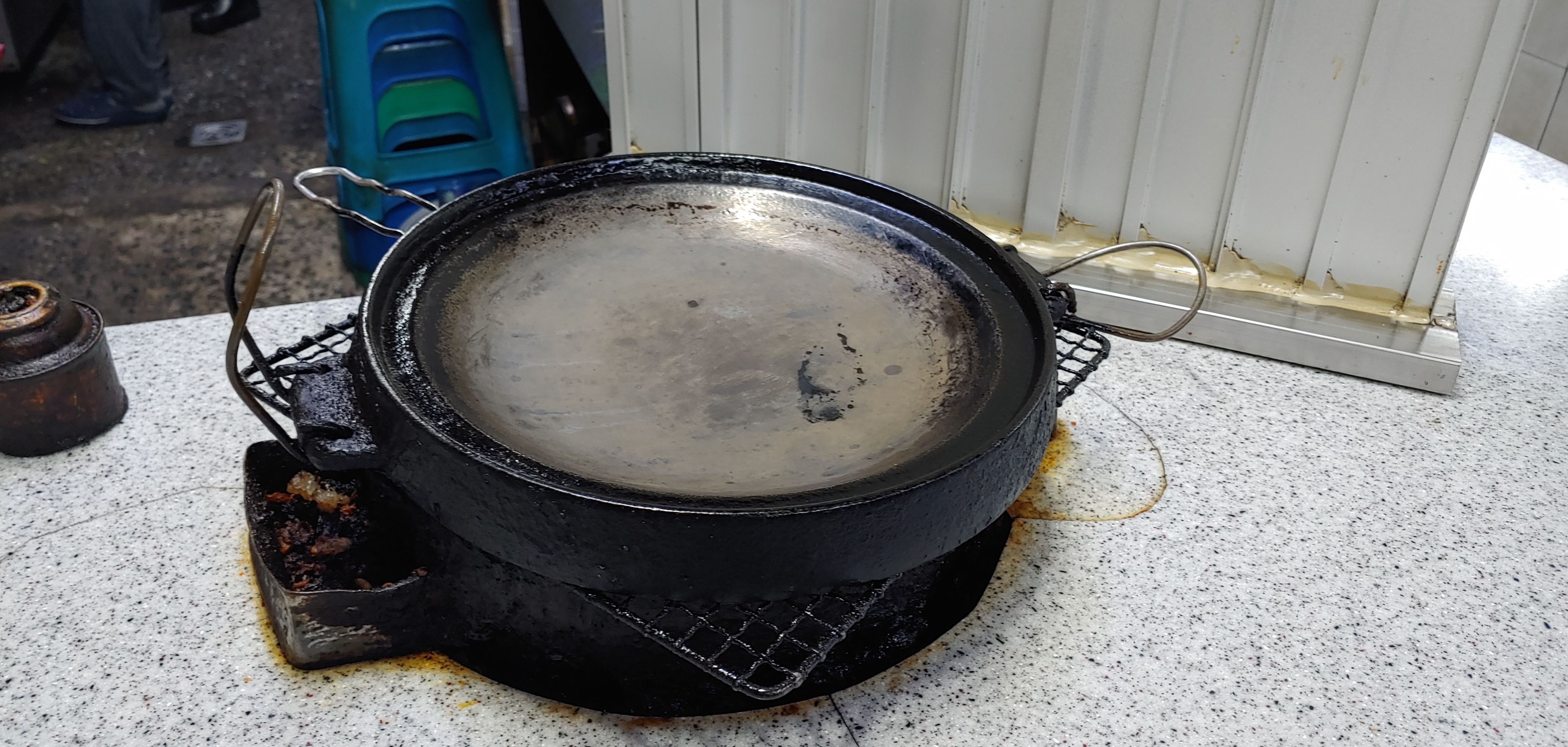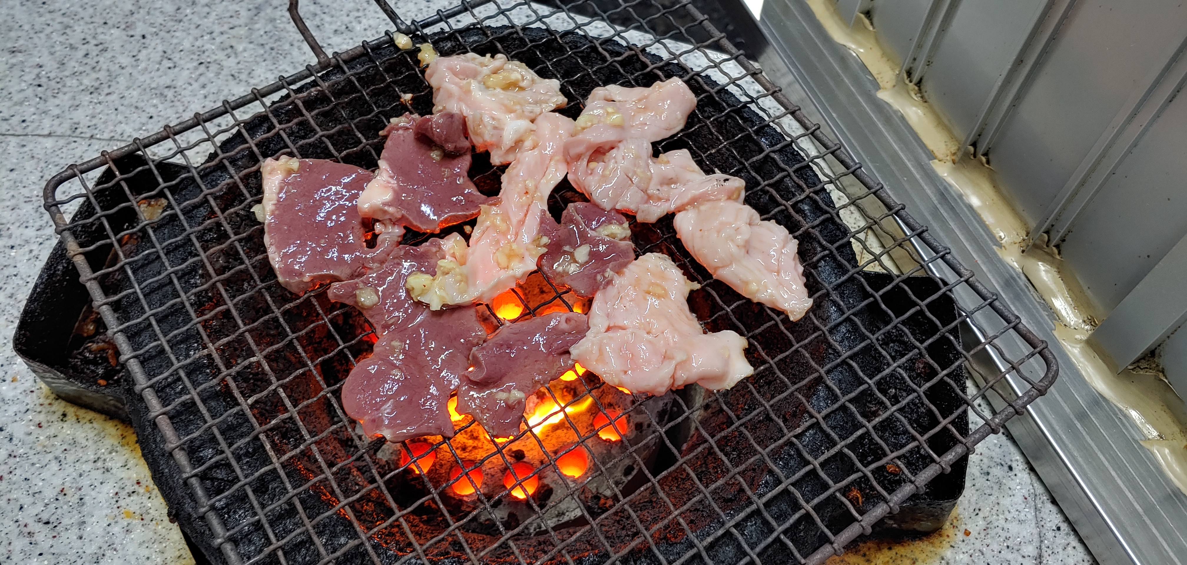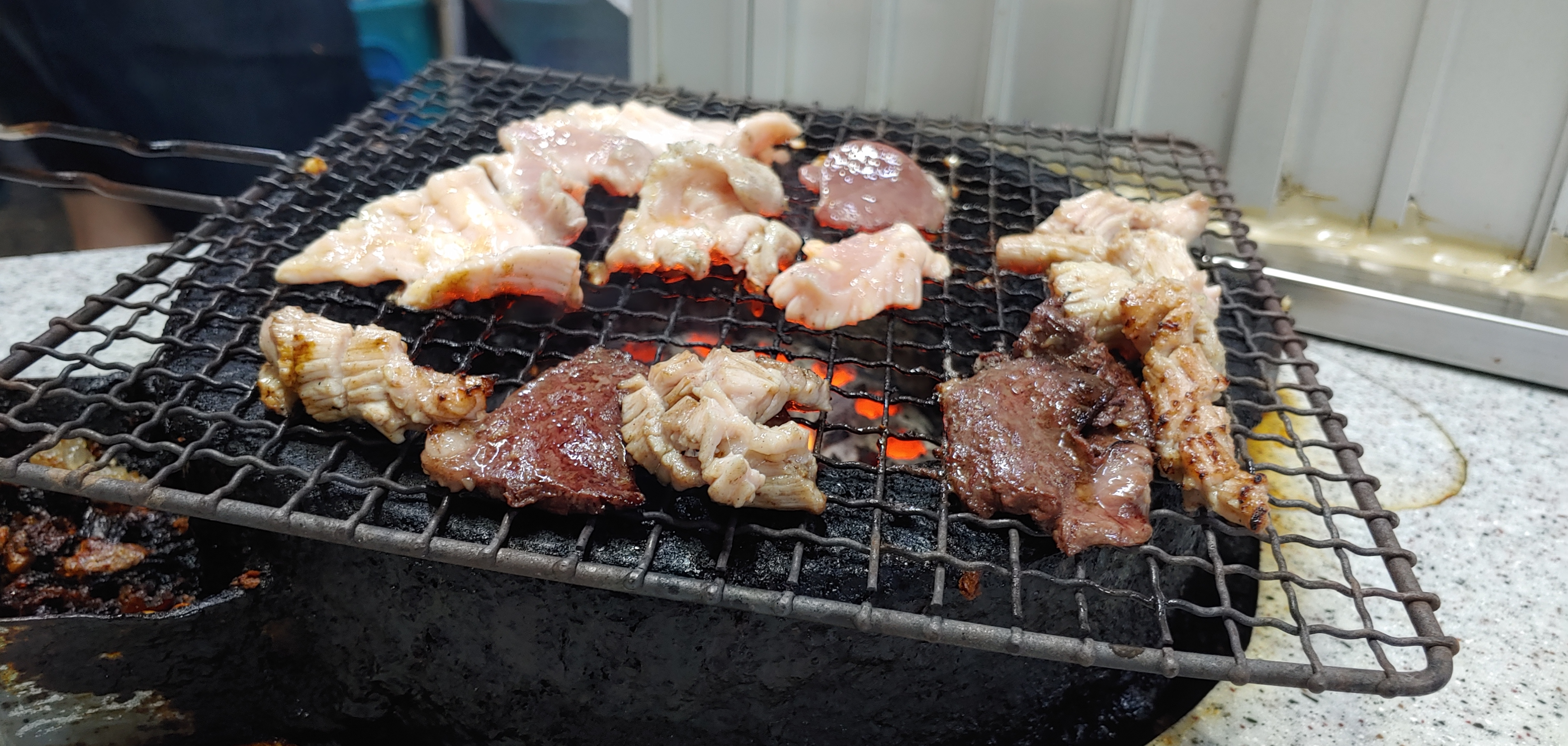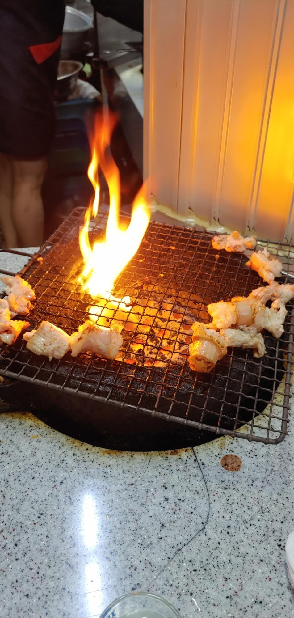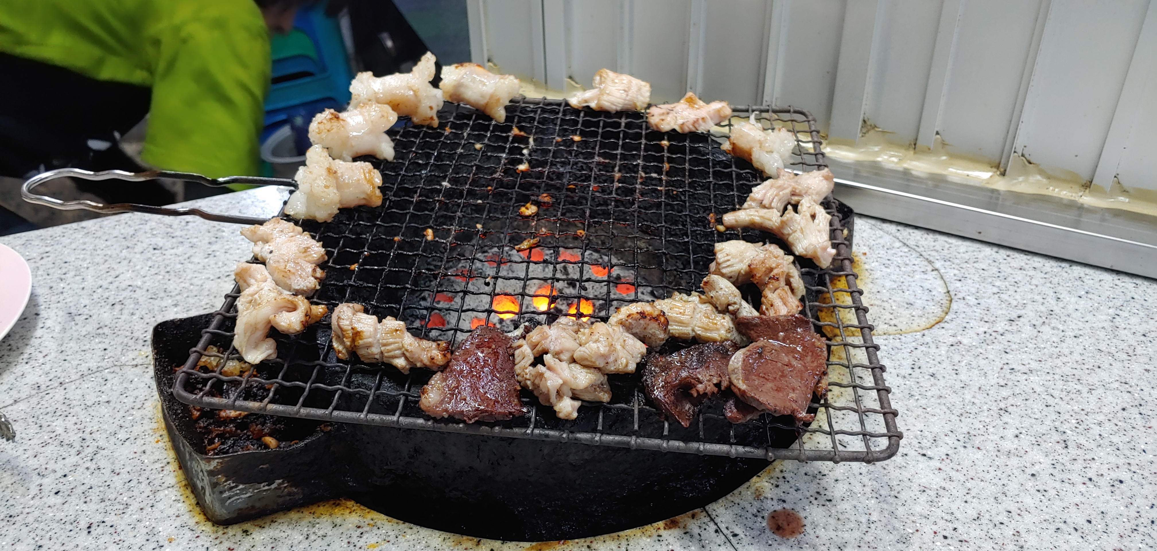 처음에는 저렇게 되어 있는데, 고기가 나오니깐 바꿔주셨다. 근데 막상 대창은 옆에 남는 화로에서 후라이팬에 구워주셨다. 아마도 기름 때문에 불이 확 올라와서 그런 것 같다.
