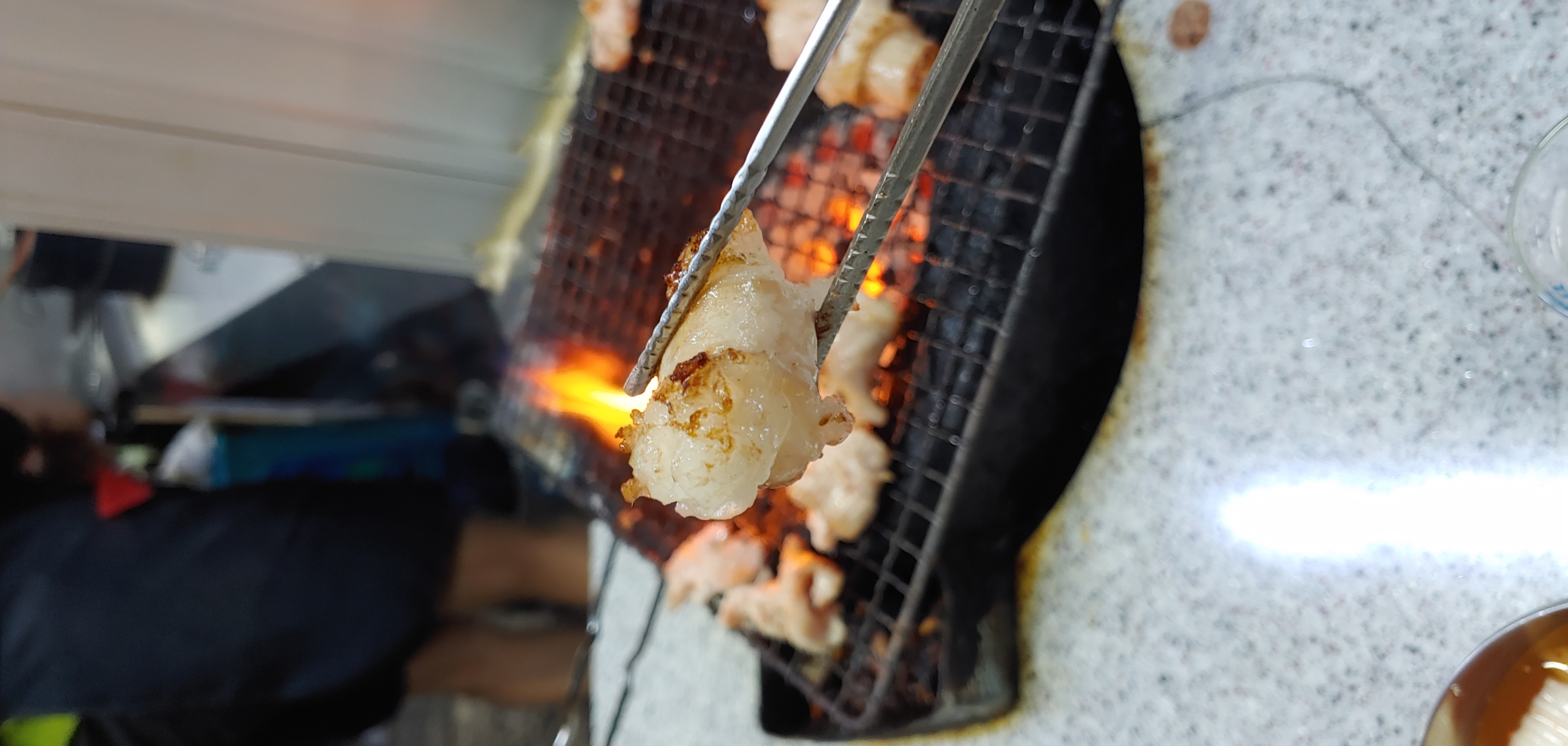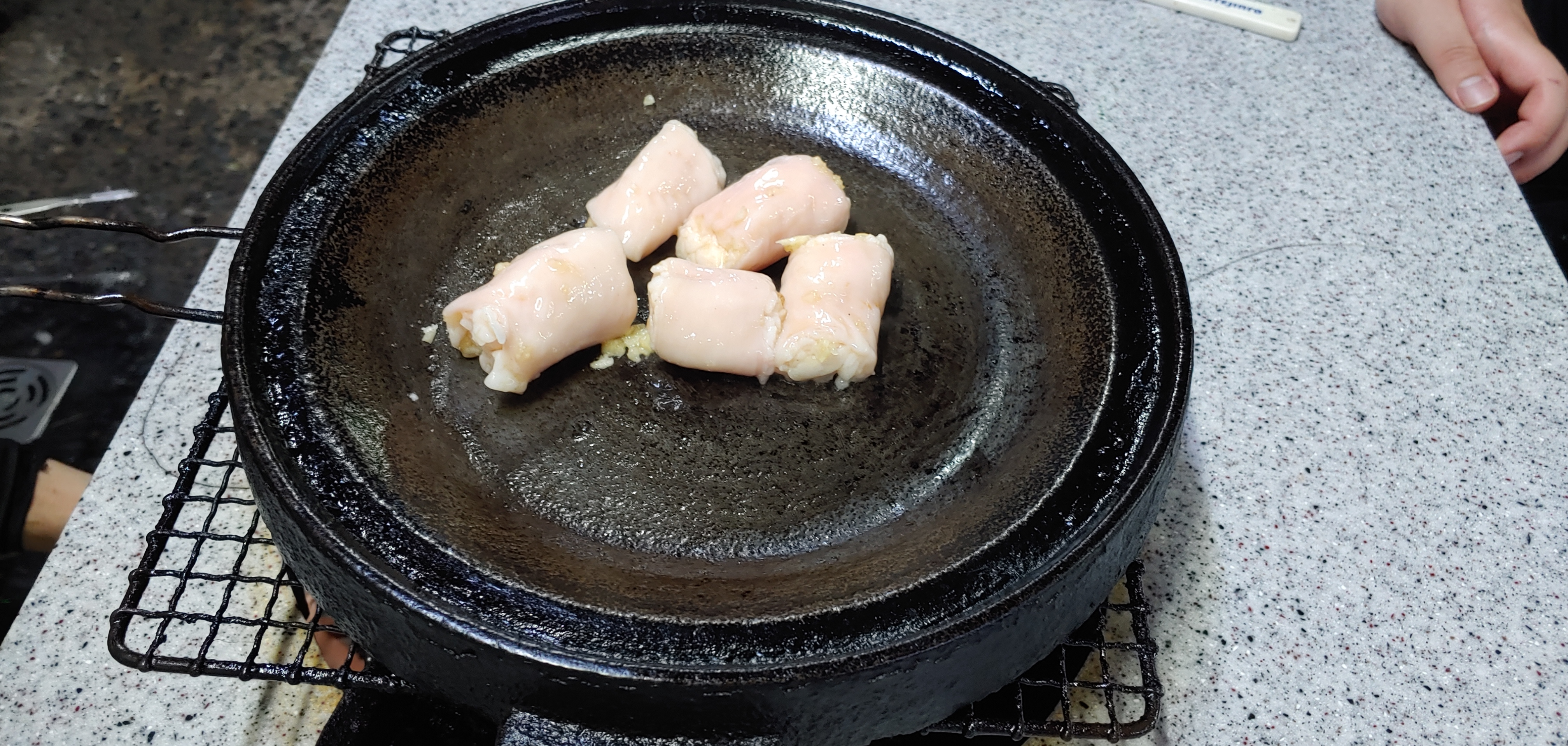 일행이 전화를 위해 잠시 자리를 비웠다. 사장님께서 시간이 걸릴 것 같으면 조금 이따가 구워주신다고 저렇게 빼두었다.