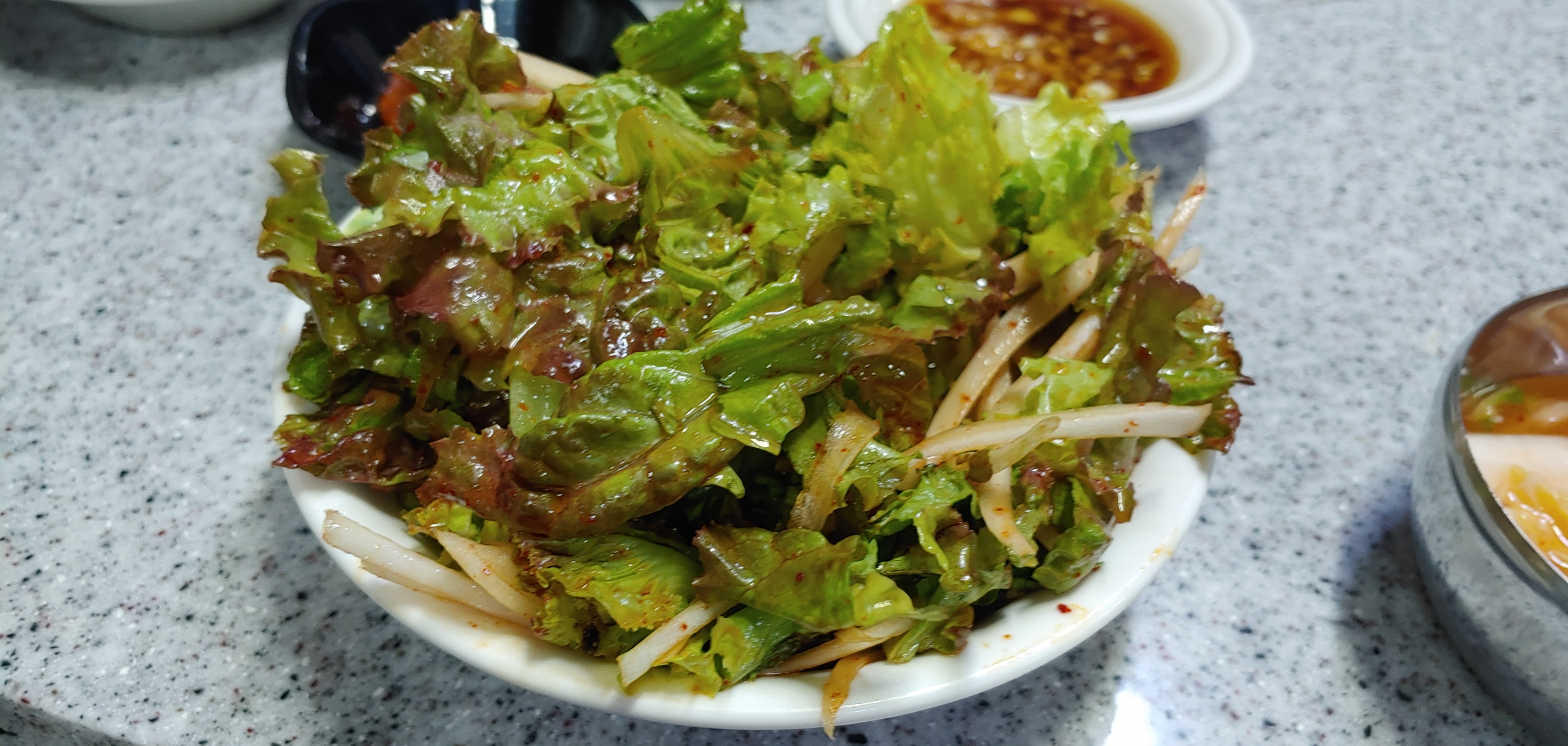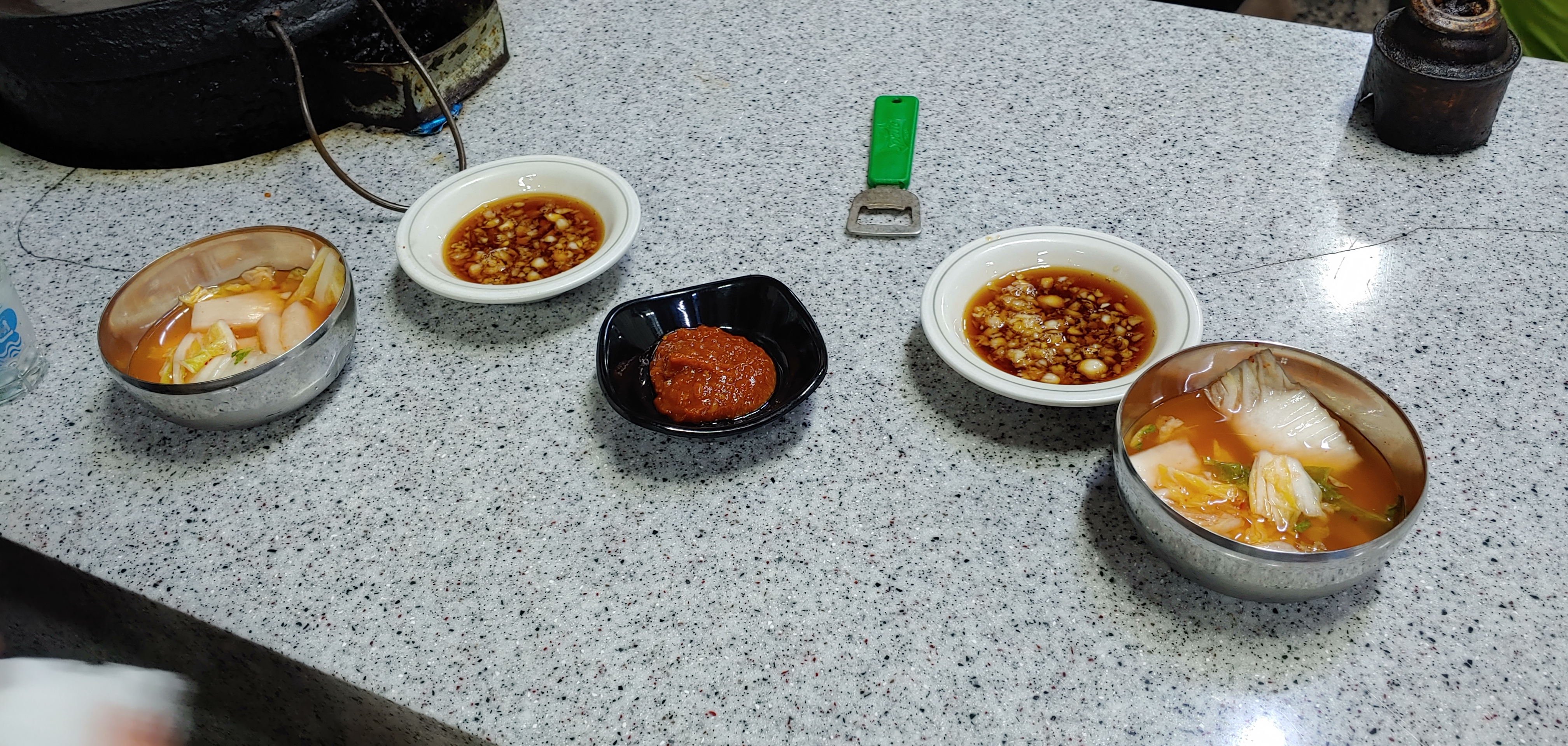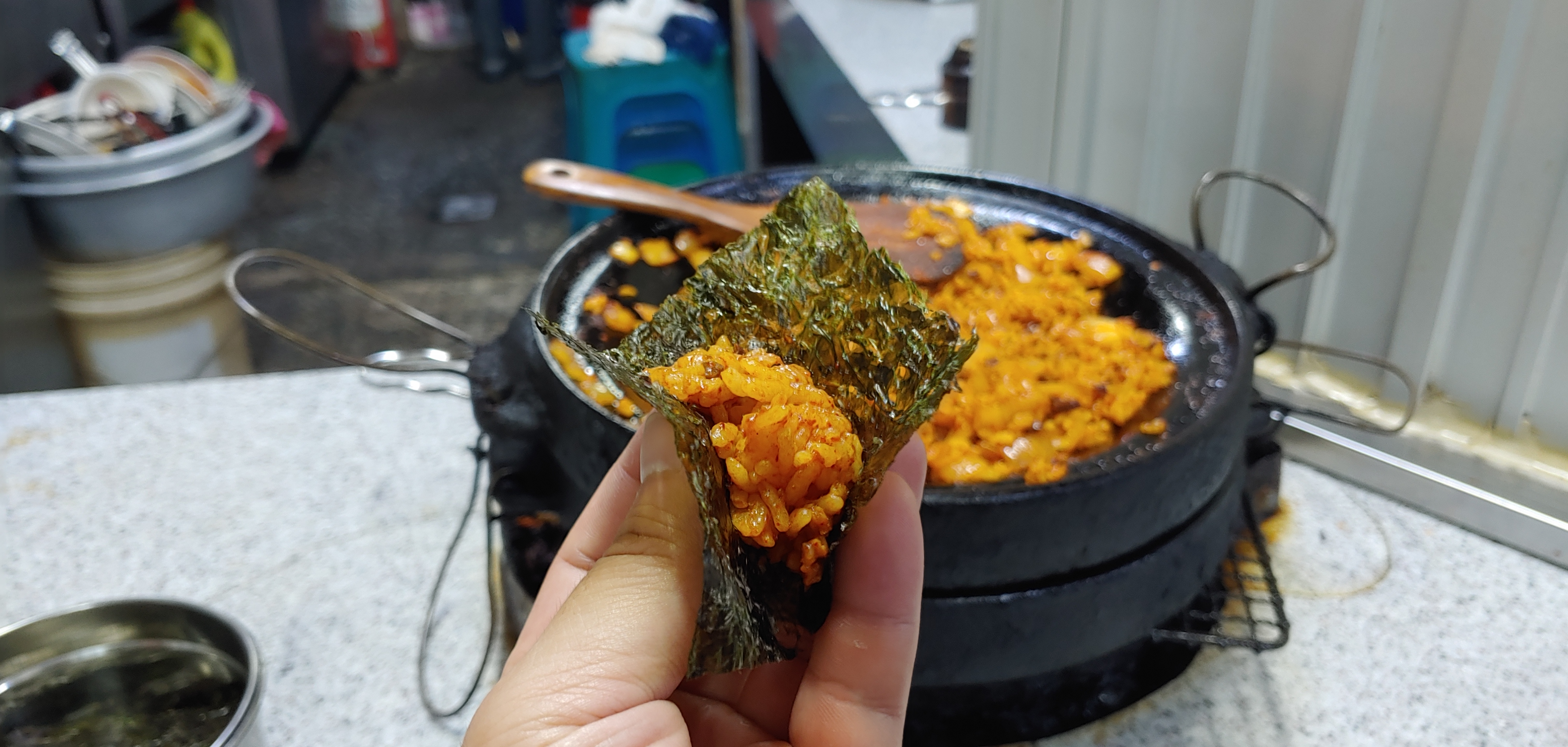 김을 엄청 많이 주신다. 정말 맘에 든다~! 김을 계속 먹어 다 먹었는데 또 잘라주셨다. 깨끗한 곳을 찾고, 편하고 시원한 곳을 찾는 다면 이곳에 오면 절대 안된다. 먹다가 옆에 벽을 보면 갑자기 먹었던 것이 다 싫어질 수도 있다. 운치와 낭만을 즐기려면 와라. 맛은 보장한다.