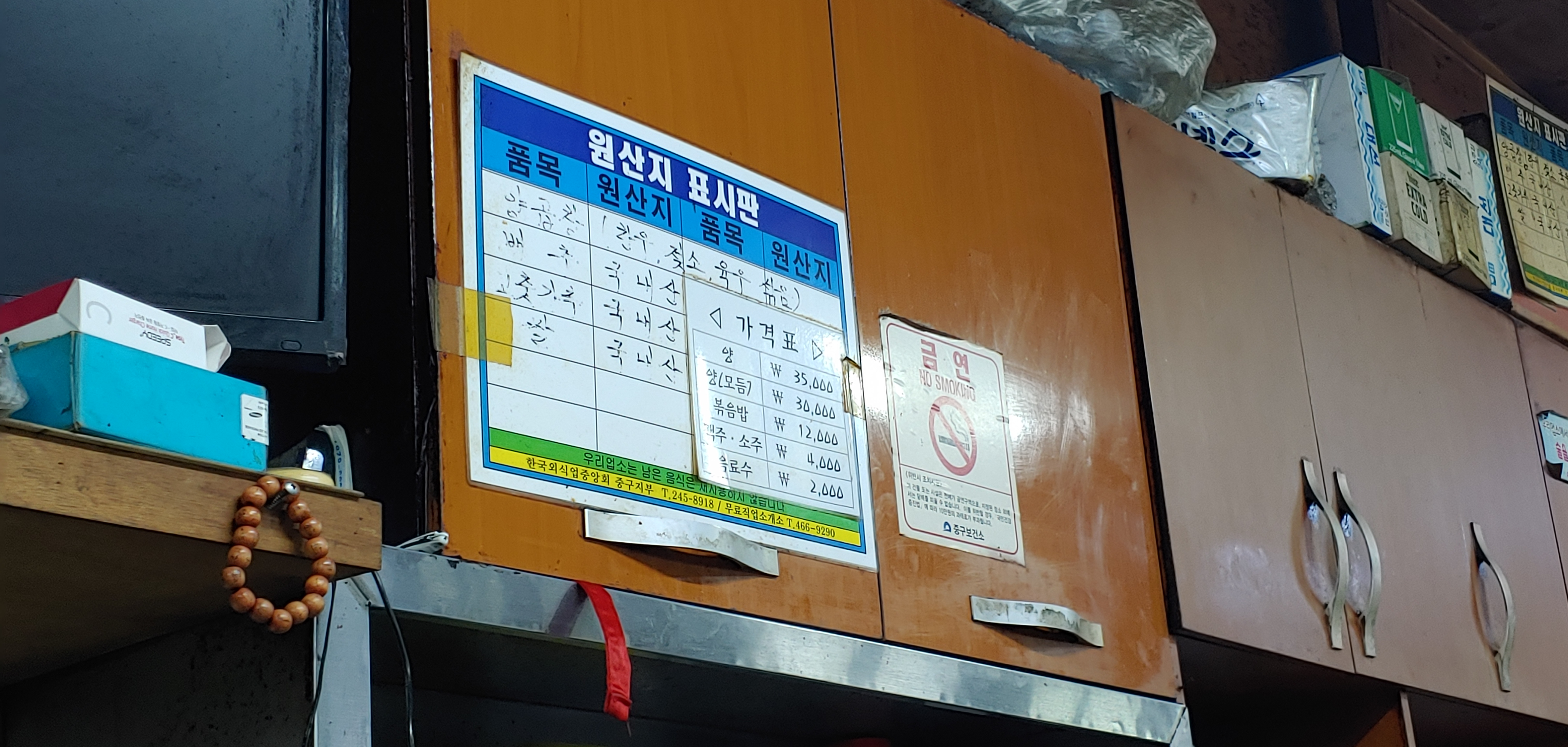 나중에 찾아보니 메뉴판이 있었다. 메뉴판이 없어도 우리에게 물어본다. 소금?양념 둘중에 머 드시겠냐고... 먹다가 모자라면 다른거 먹거나 볶음밥 먹으면 된다고..... 고기류는 처음에는 소금이지~!!!!!