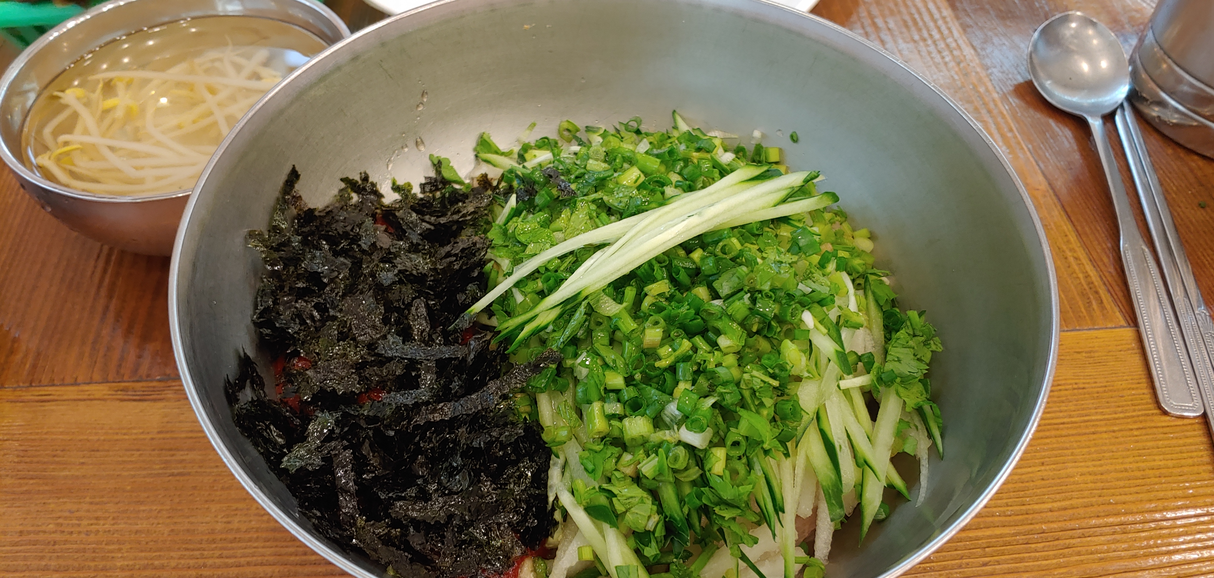 원래 물회가 물이 없나 싶을정도로 그냥 일반 비빔이 되어 버렸는데, 먹다보니? 시간이 지나다보니 야채와? 내 입에서 물이 나오는 것 같았다.