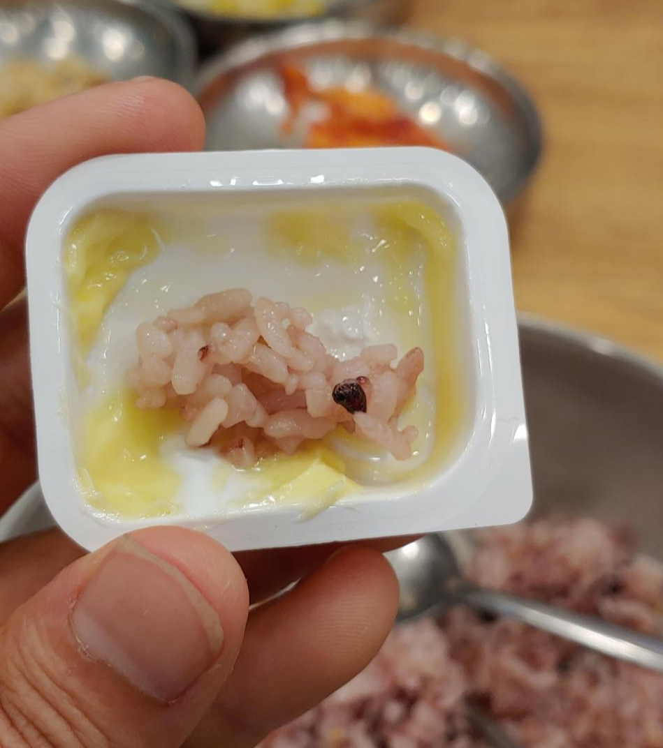 머 얼마나 먹겠어라고 말한지 1초도 지나지 않아서 그는 버터 통에 비벼 먹으려고 하고 있었다.
