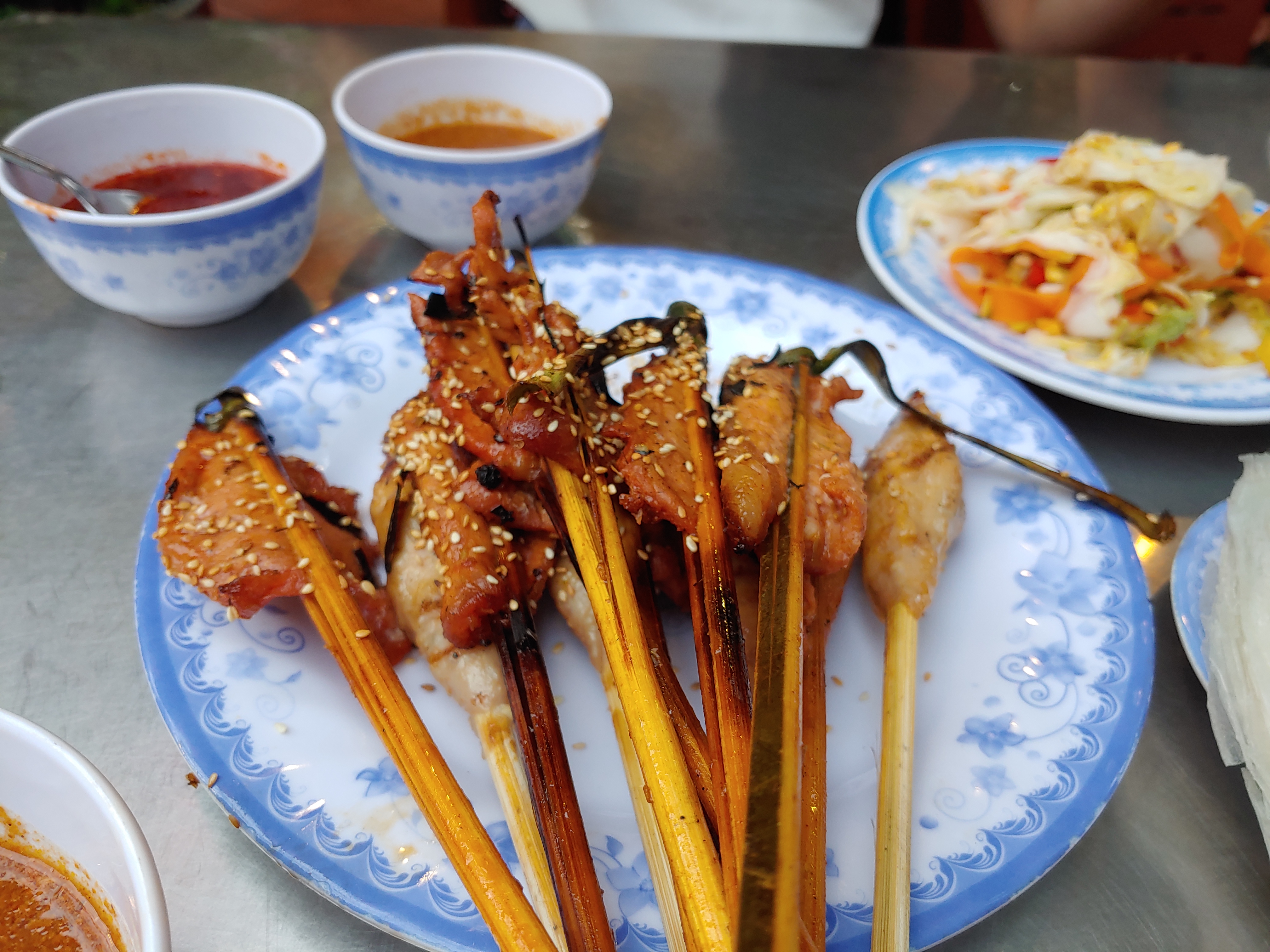 먼지는 알 수 없는 고기 꼬치가 2종류가 나온다. 어떤 친구는 이 고기가 엄청 건조해서 맛이 없었다고 했는데, 너무 악평을 듣고 와서 그런지 그냥 먹을 만했다. 그냥 베트남에서 바라는 게 없이 먹다보니 맛있게 느껴졌다.