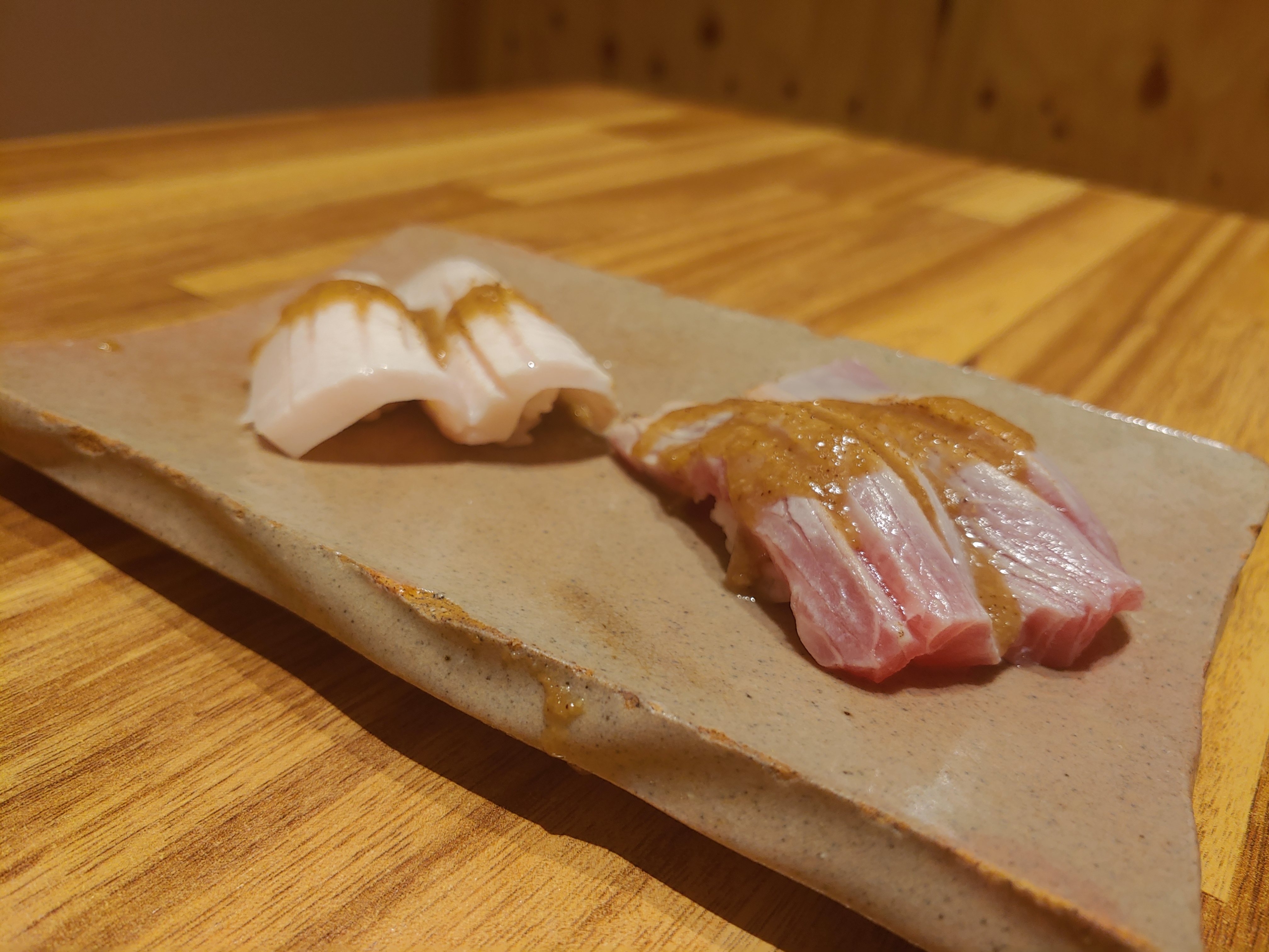 드디어 기다리고 기다렸던 메뉴가 등장하였다. 2인상임에도 불구하고 처음부터 2점정도 먹을 수 있게 세팅해서 가져와 주셨다. 사진을 보니 다 그런 것은 아니네.. 비싼게 있나보다. 다 맛있고 깔끔하고 나와서 너무 좋다. 이상하게 참치집에서 설명은 엄청 듣고 가는데 집에 돌아오면 기억 나는게 하나도 없다. 다음부터는 정말 공부해야겠다.