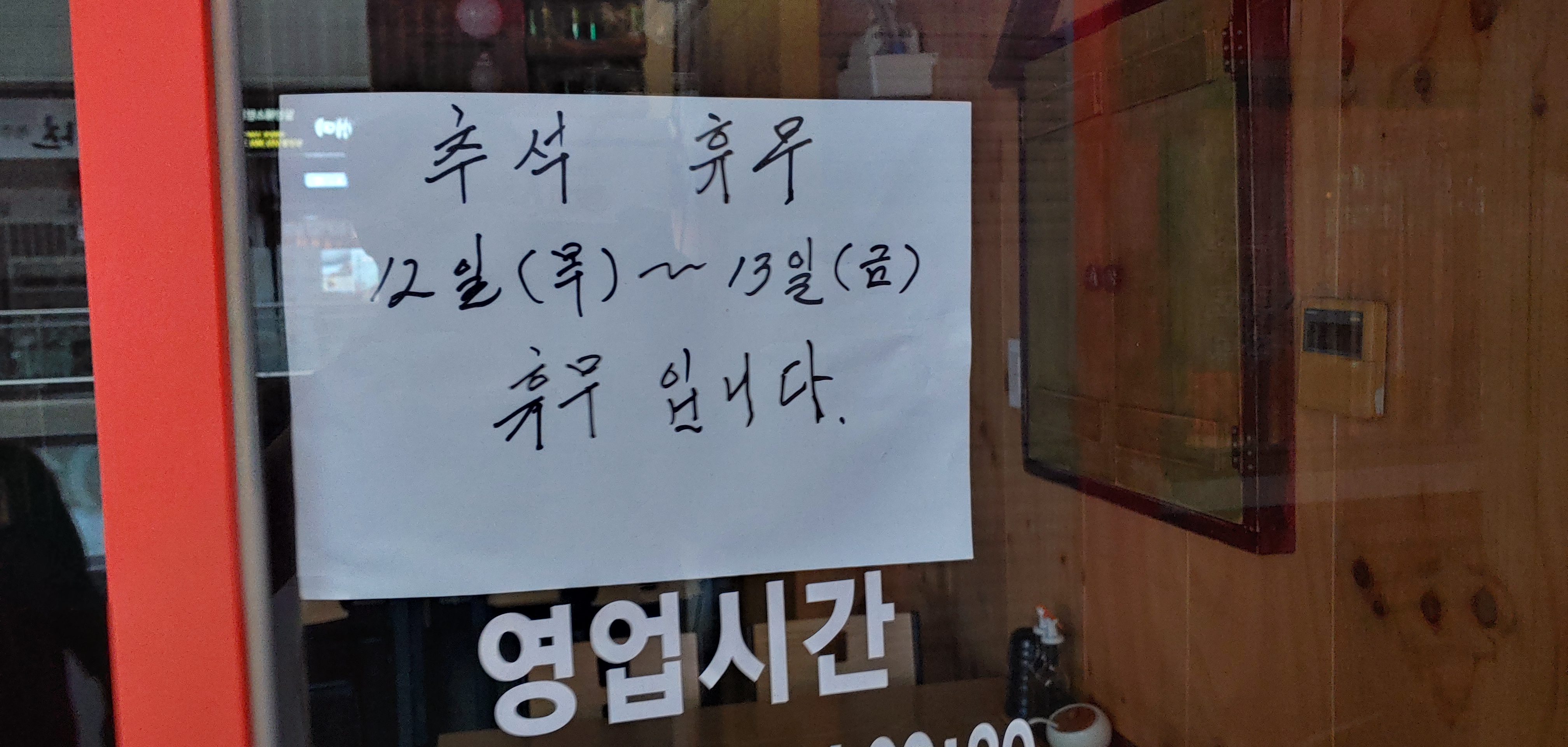 어느 가게와 마찬가지다. 근데 추석이라 그런지? 시간이 2시 대였는지 몰라도 몇가지 재료는 떨어져가는 분위기였다. 머 꼭 먹어야 하는 것은 아니여서 그냥 담았다.