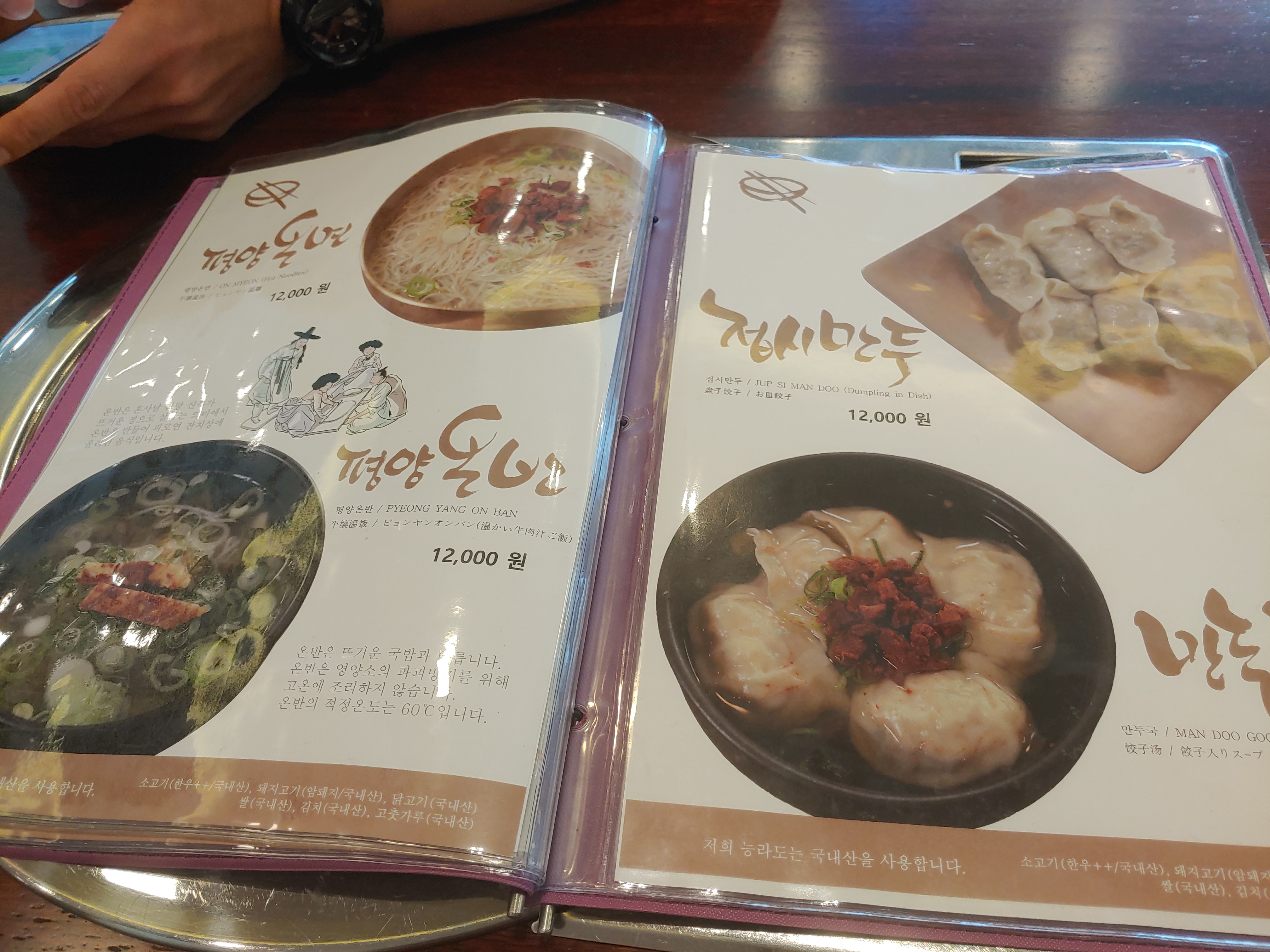 지짐이를 먹을까 만두를 먹을까 엄청 고민하다가 옆에 테이블의 만두가 맛있어 보여서 만두로 결정하였다. 사실 평양냉면을 먹을까 온반을 먹을까도 엄청 고민했었었다. 이 세상에 고민거리가 너무 많으면 안되어 그냥 평양냉면으로 선택하였다.