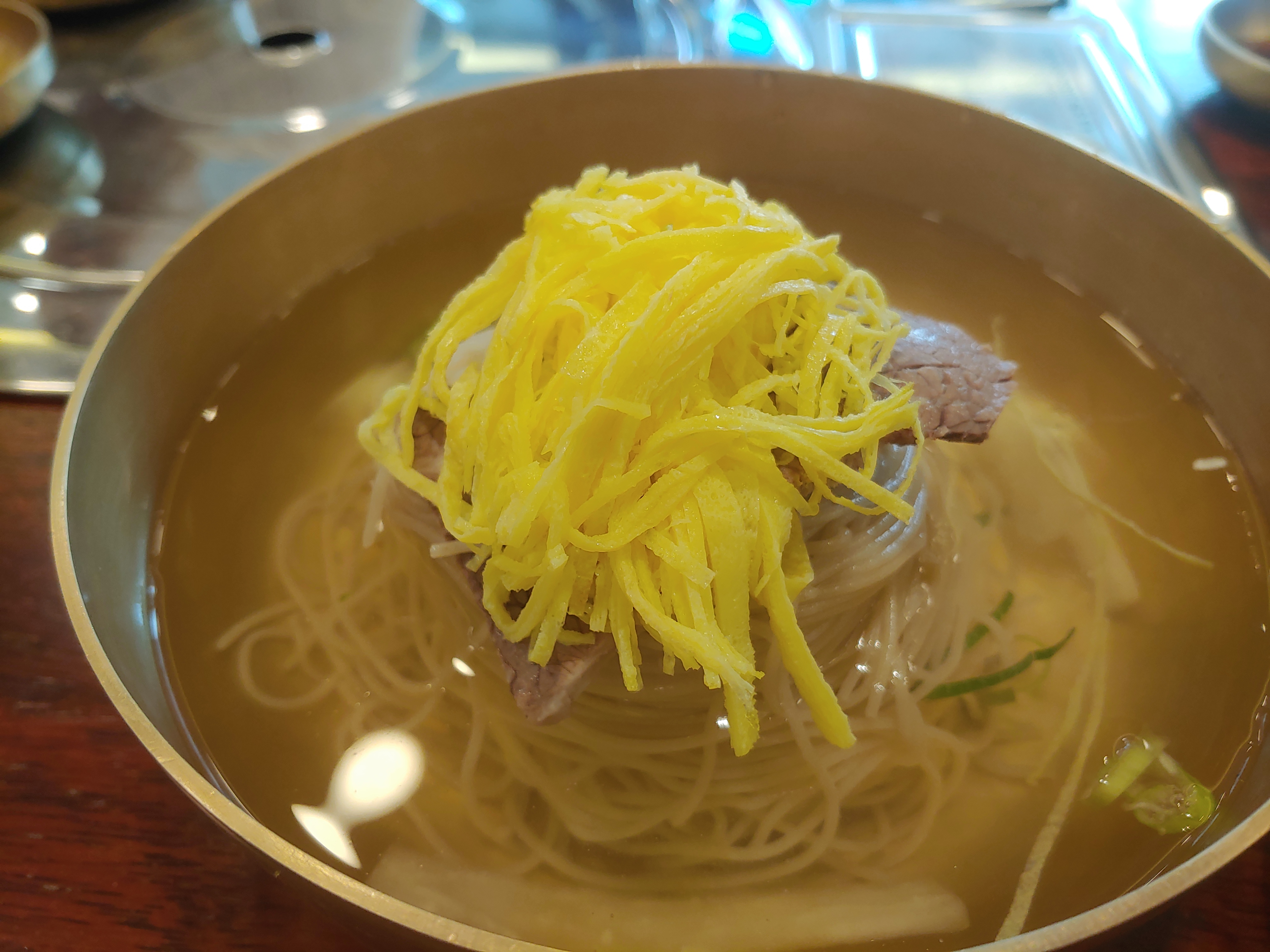이 곳에 2번째 온 것인데, 생각보다 더 나아진 것 같다. 그동안 내가 평양 냉면을 몇번 더 먹은 것도 있었지만 국물에 확실히 간이 쎄진 것 같다. 하지만 면이랑 같이 먹게 되면 다시 내가 알던 평양 냉면으로 돌아 간다.